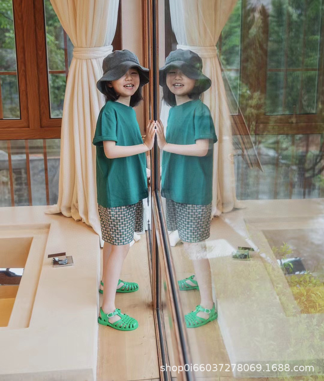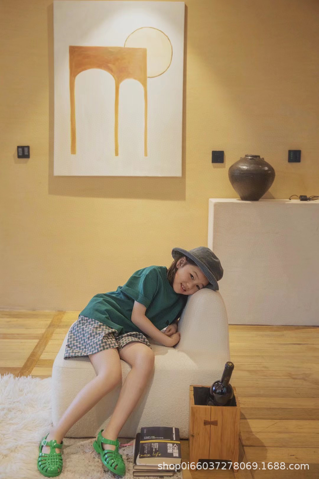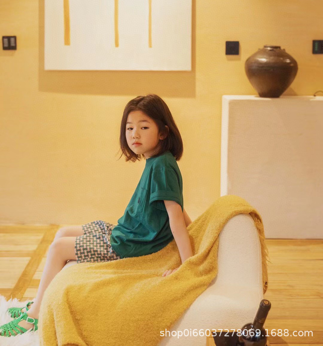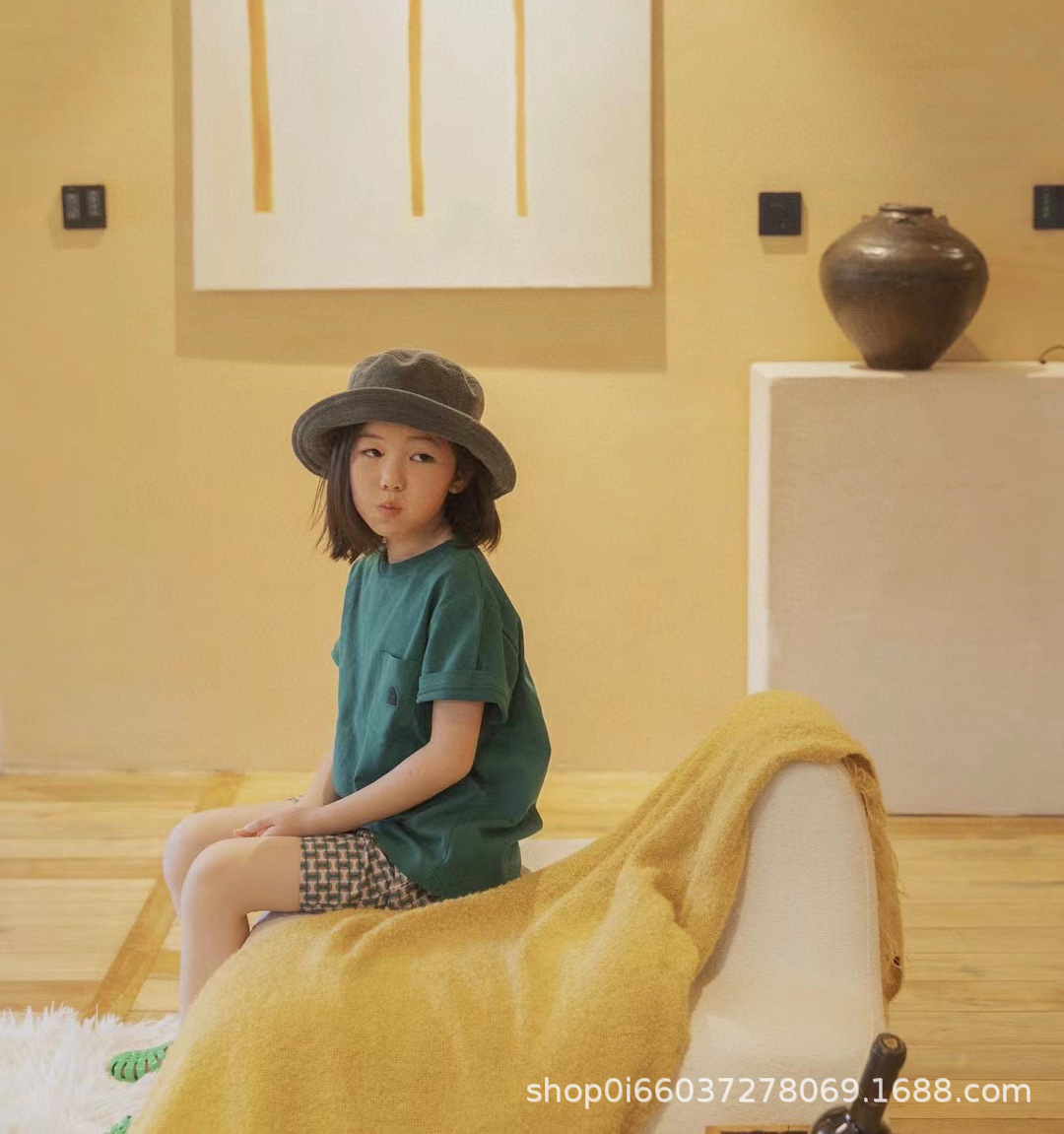 23 여름 새 아동복 반소매 일본식 올매치 편지 자수 크루 넥 루즈 아기 티셔츠 탑 하프 슬리브스토어 가기