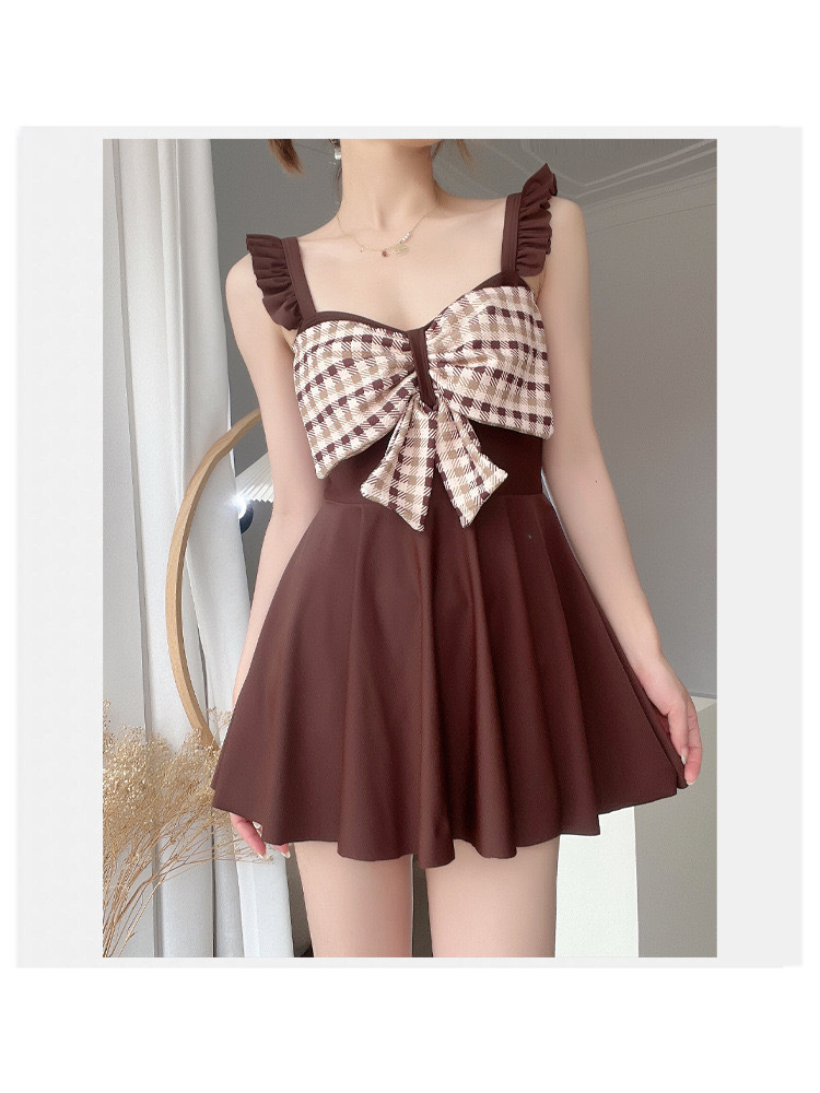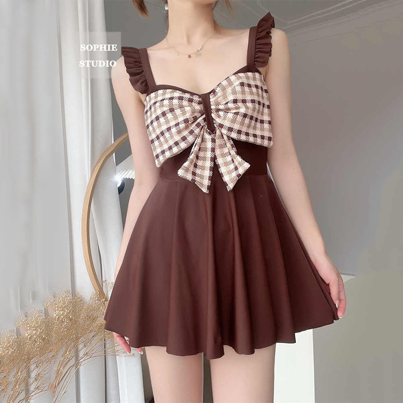 2023 신상품 원피스 수영복 여성용 슬링 레트로 원피스 스커트 스타일 학생 소녀의 한국 스타일 온천 보수 수영복스토어 가기