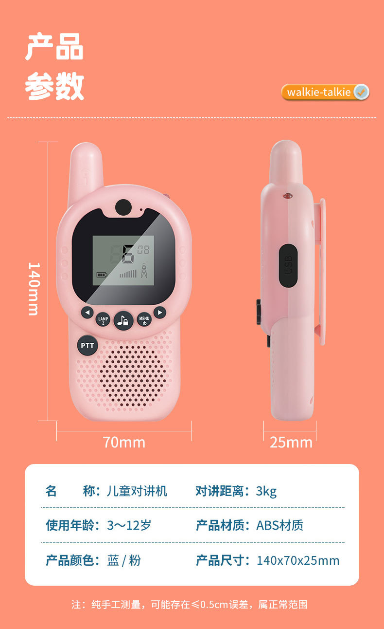 국경 간 미니 어린이 워키 토키 핸드 헬드 무선 통화 충전식 3km 부모-자식 상호 작용 쌍 장난감 선물스토어 가기