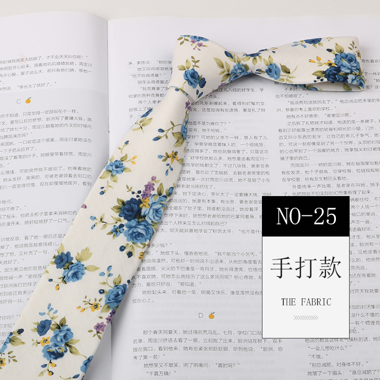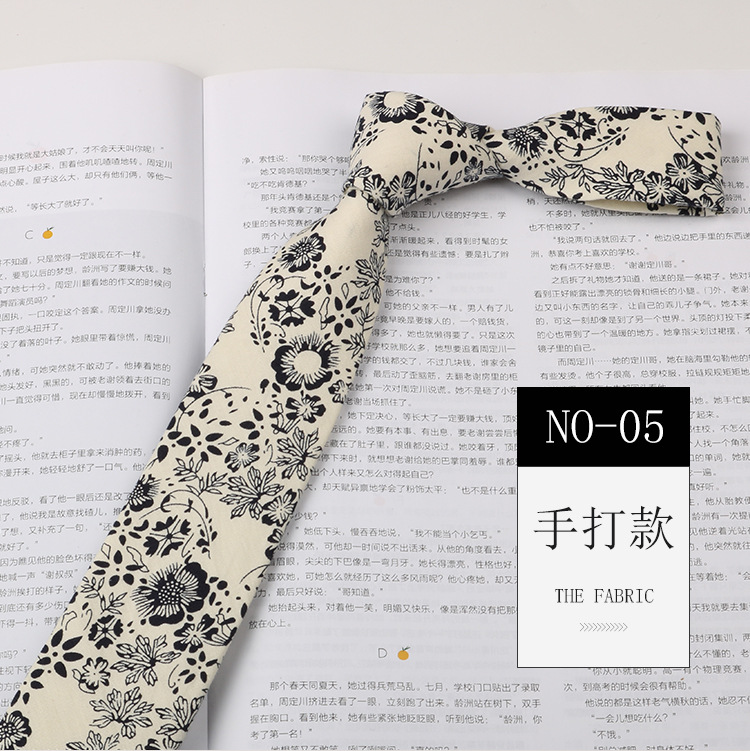 꽃 넥타이 남자 패턴 면 셔츠 마카롱 컬러 인쇄 좁은 6cm 한국 스타일 캐주얼 여성 넥타이