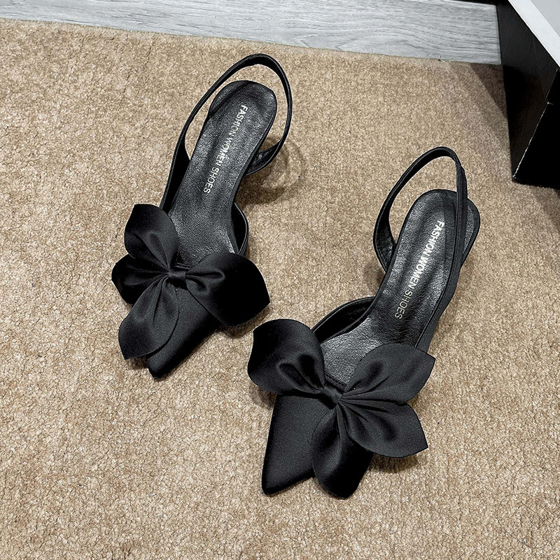 유럽과 미국 대외 무역 하이힐 여성용 2023 여름 새로운 새틴 보우 플라워 Baotou 빈 힐 샌들스토어 가기