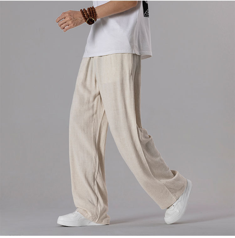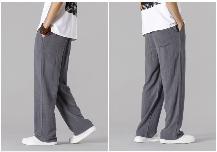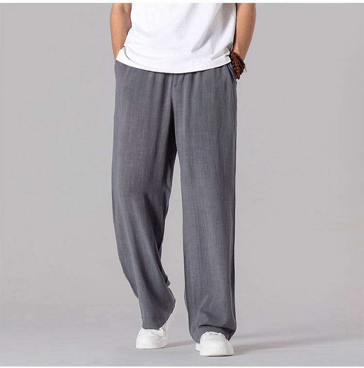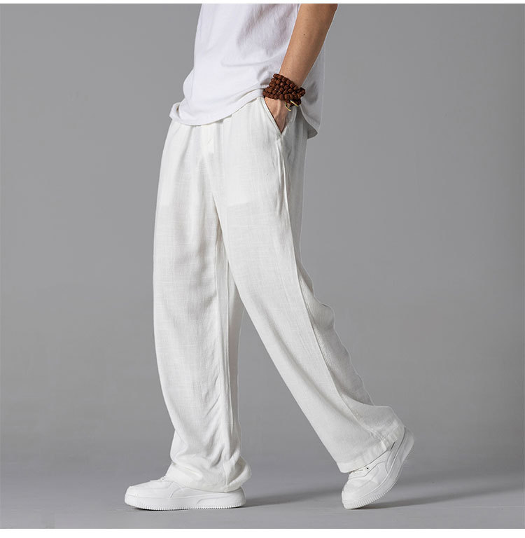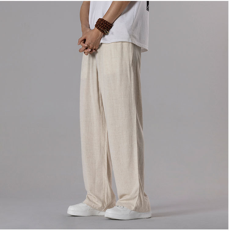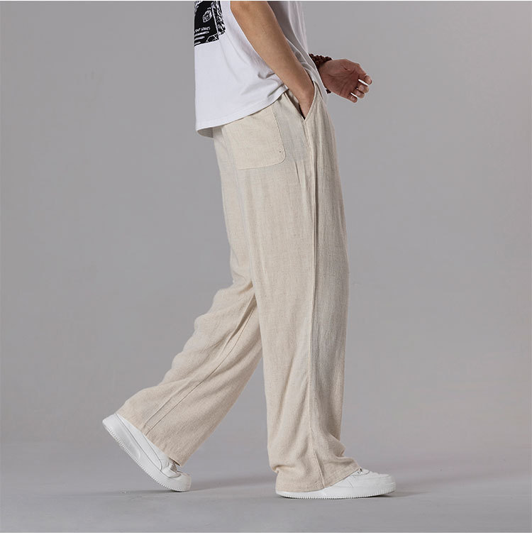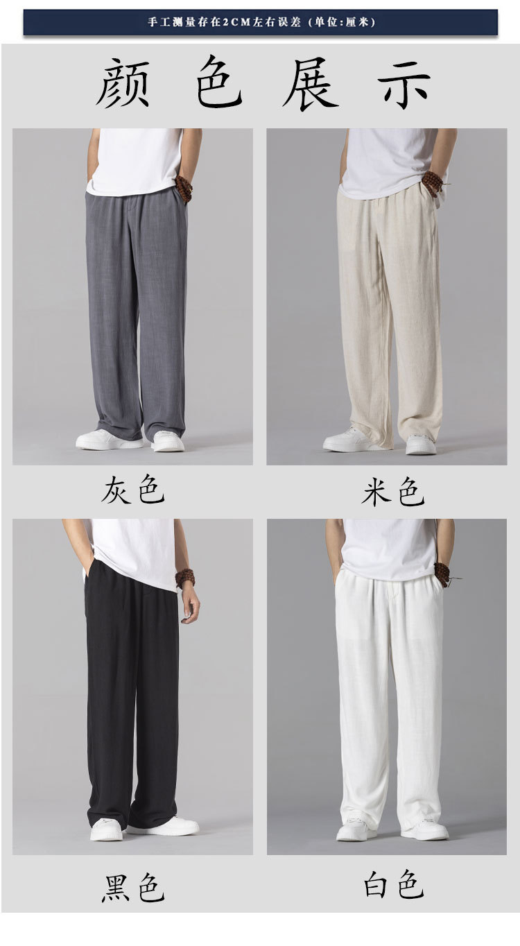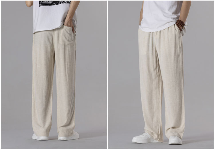 면 리넨 바지 남성용 여름 얇은 느슨한 리넨 캐주얼 바지 외부 착용 대형 스트레이트 다리 바지 도매스토어 가기