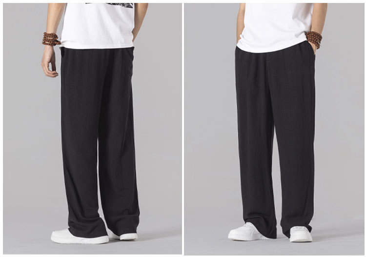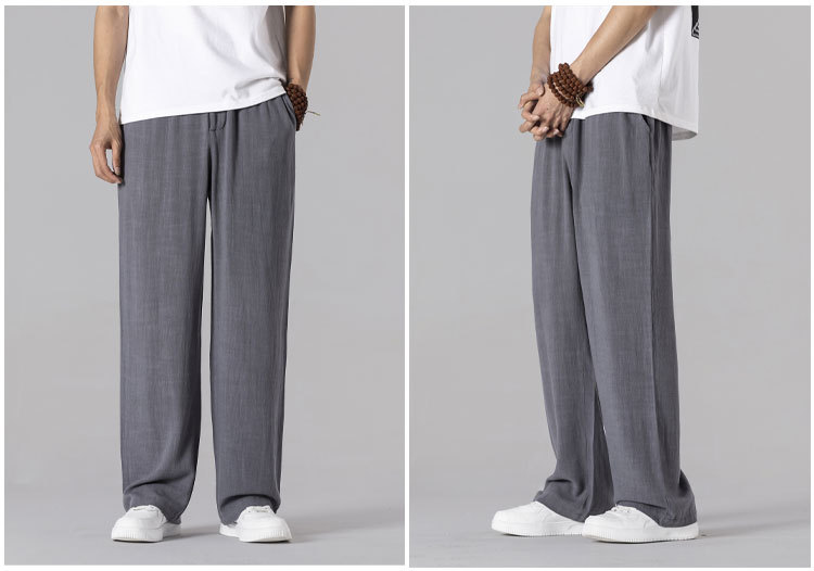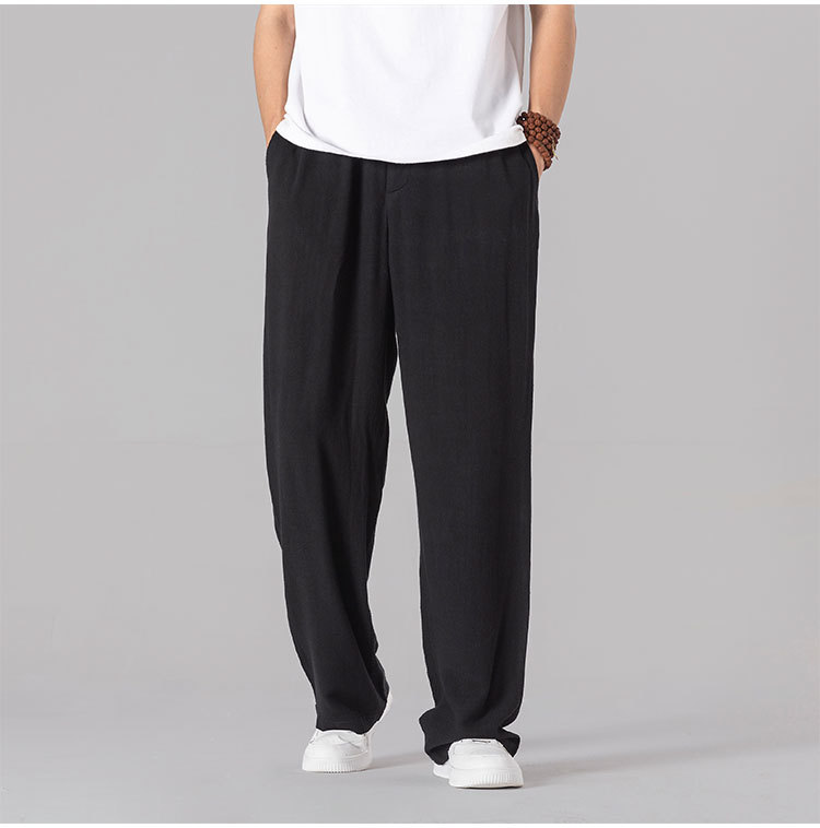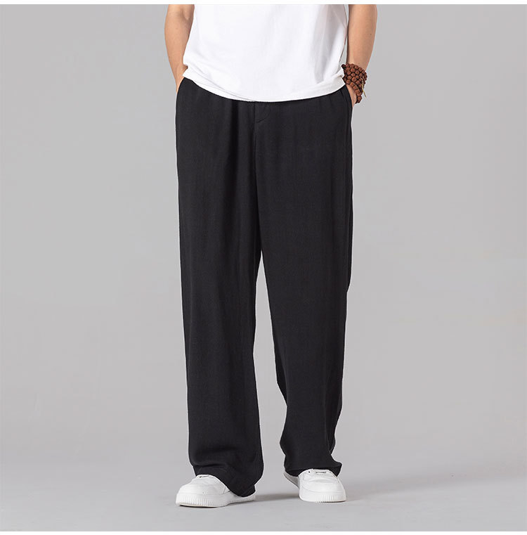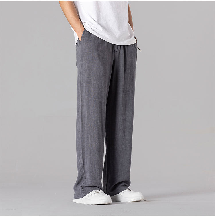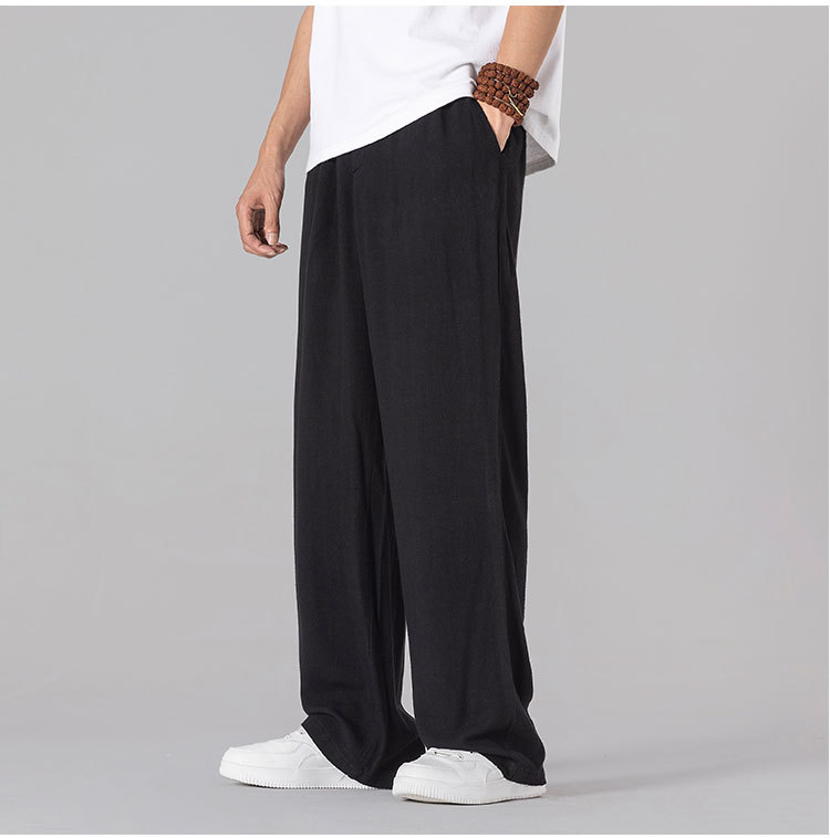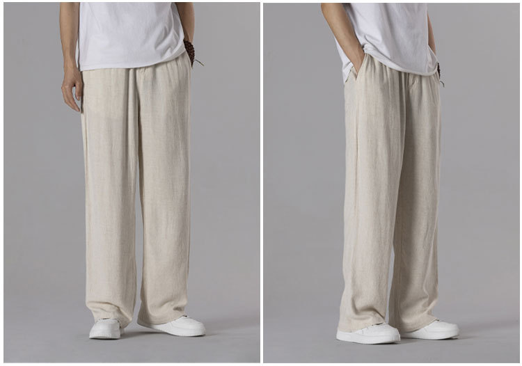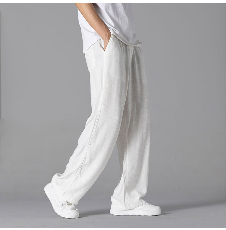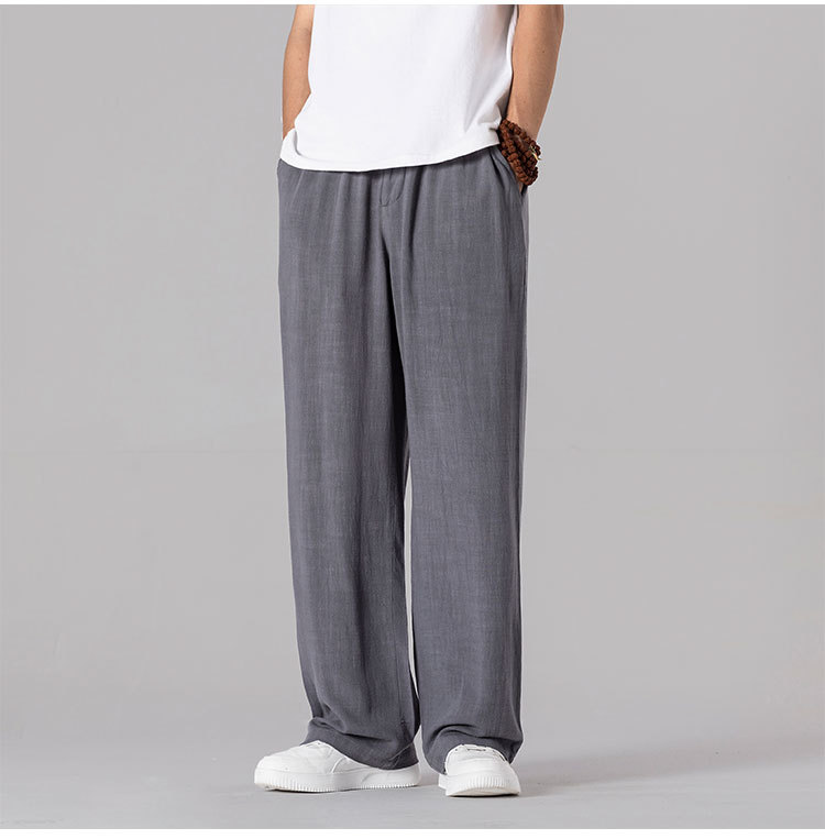 면 리넨 바지 남성용 여름 얇은 느슨한 리넨 캐주얼 바지 외부 착용 대형 스트레이트 다리 바지 도매스토어 가기