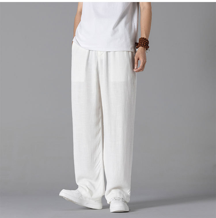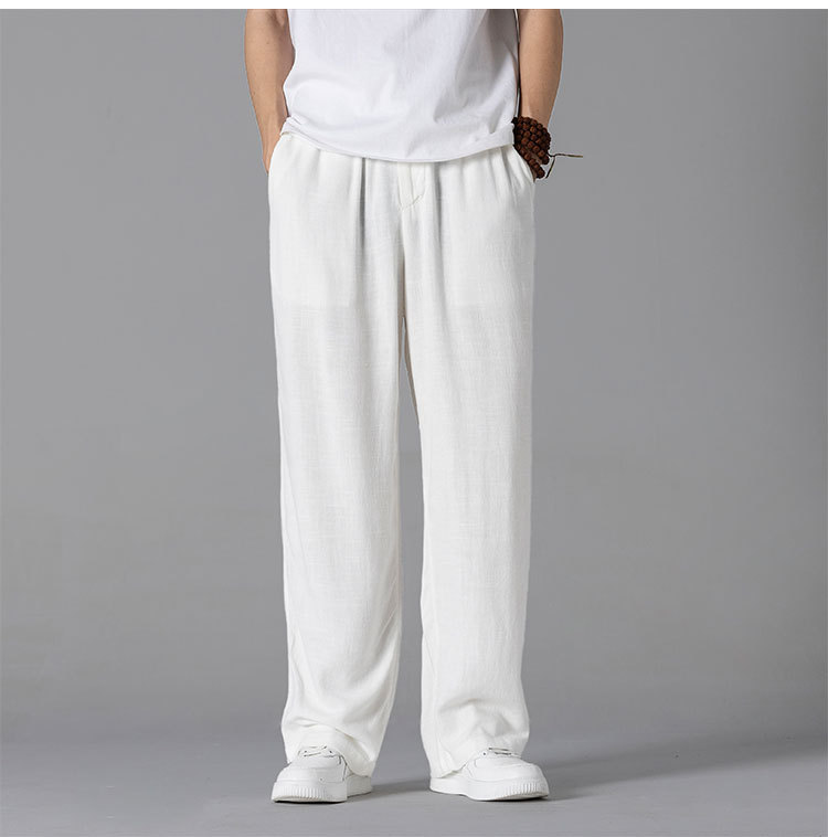 면 리넨 바지 남성용 여름 얇은 느슨한 리넨 캐주얼 바지 외부 착용 대형 스트레이트 다리 바지 도매