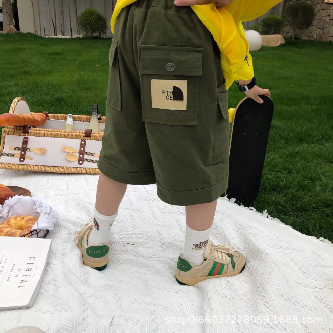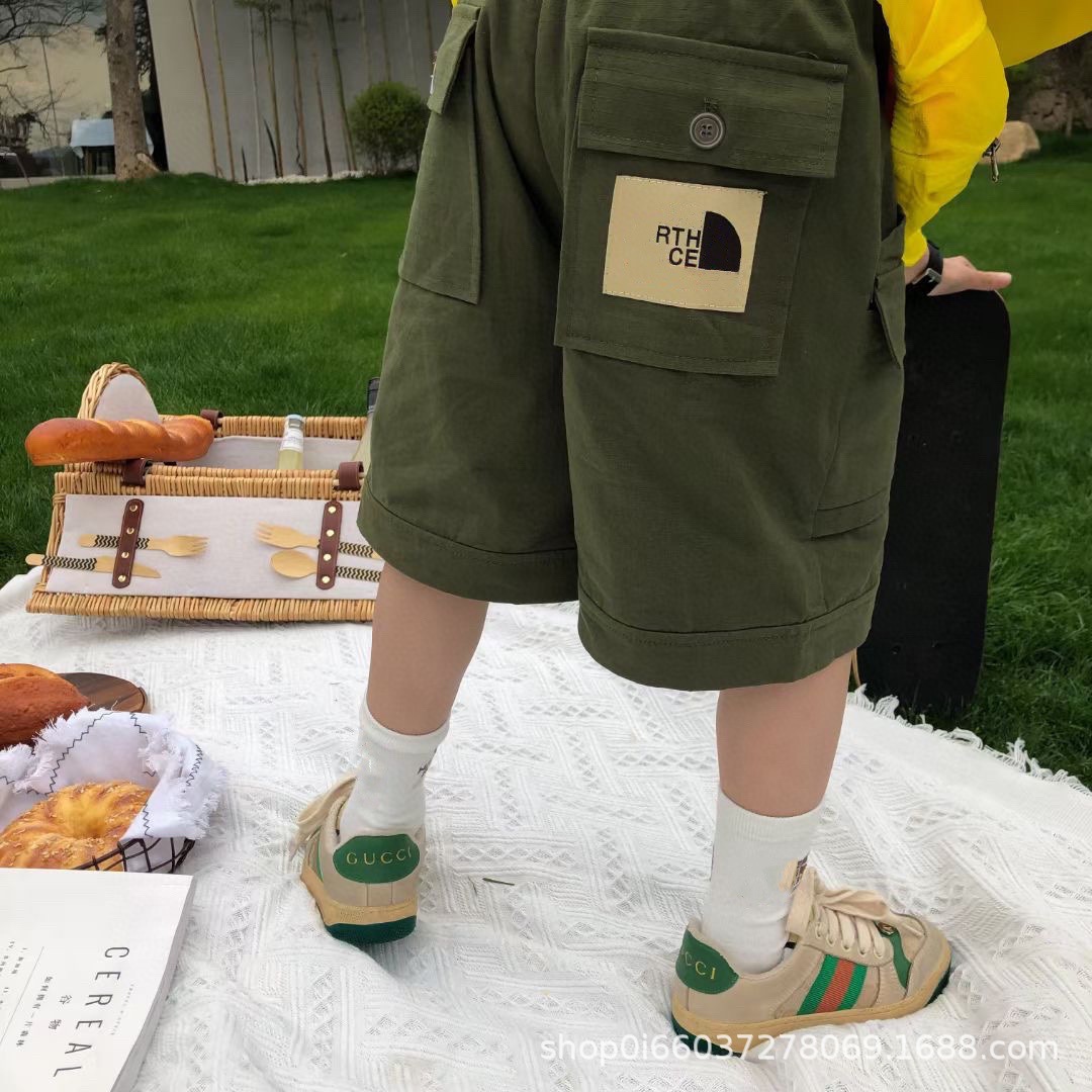 아동복 대외 무역 공동 2023 새로운 스타일 트렌디 남성 반바지 여름 얇은 면 어린이 작업복 바지