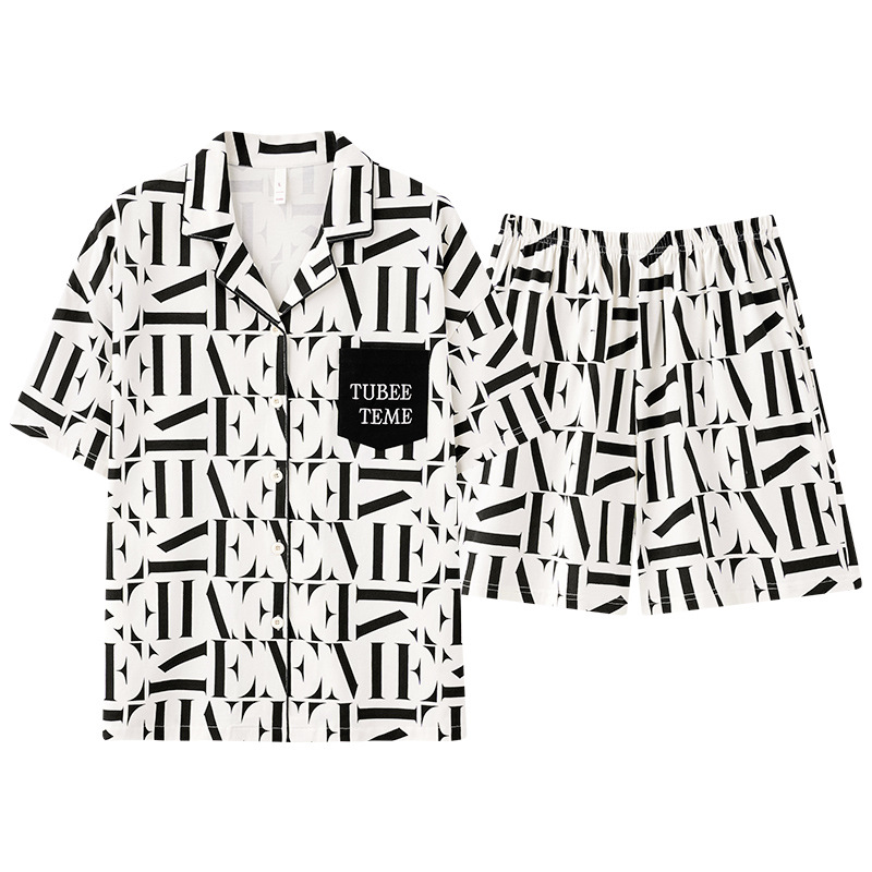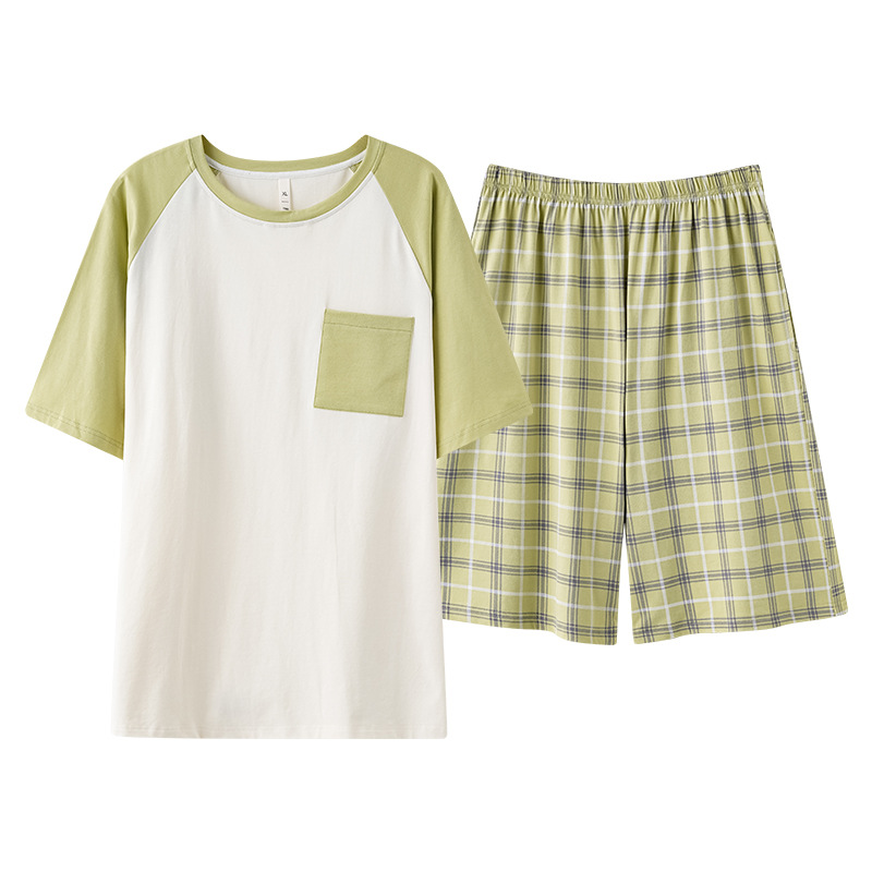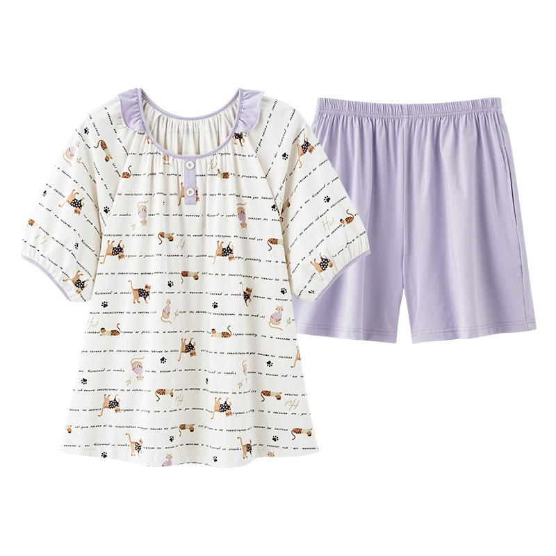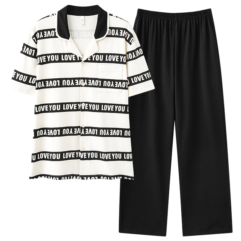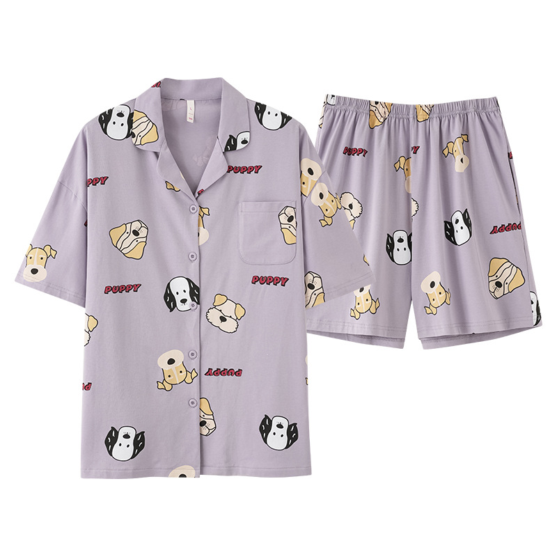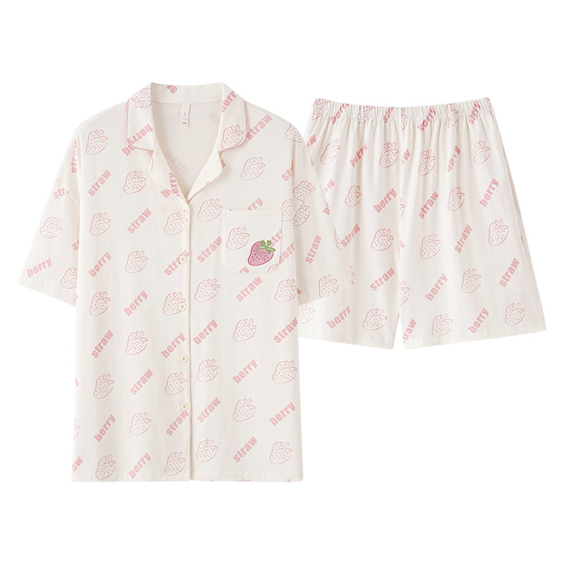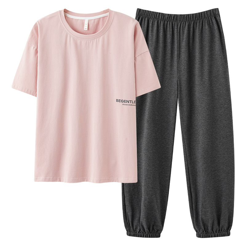[깨진 코드 혜택] 풀업 코튼 커플 순면 잠옷 코튼 모 여성 및 남성 반팔 봄 여름 집 밖에서 착용 가능