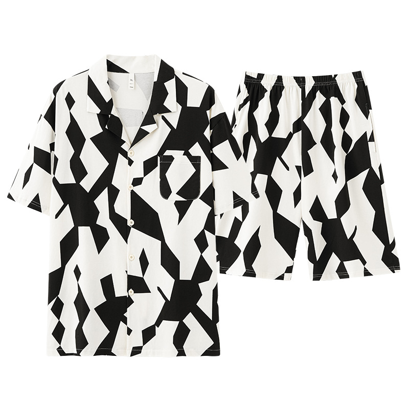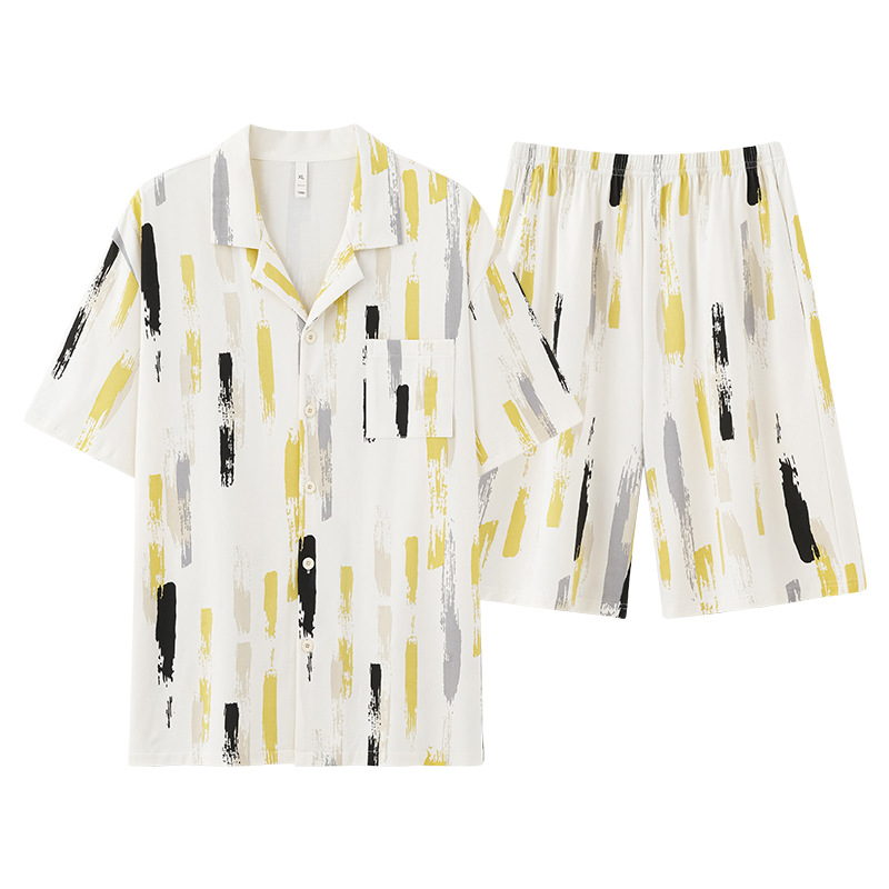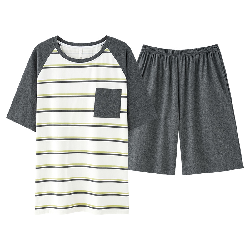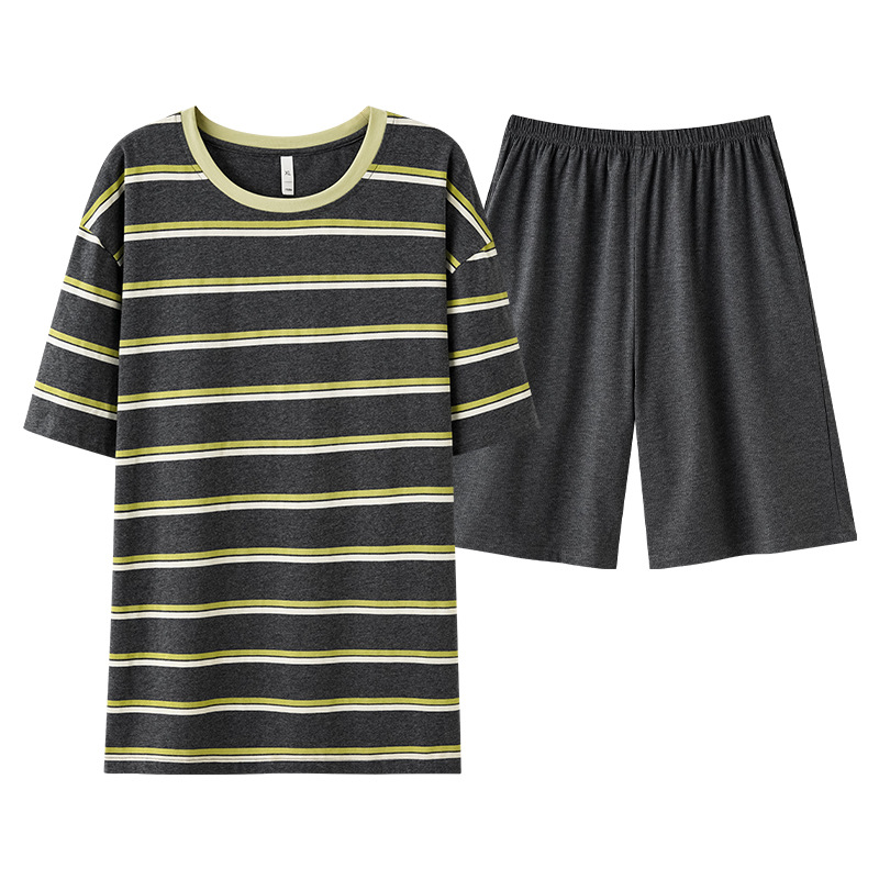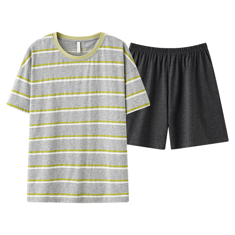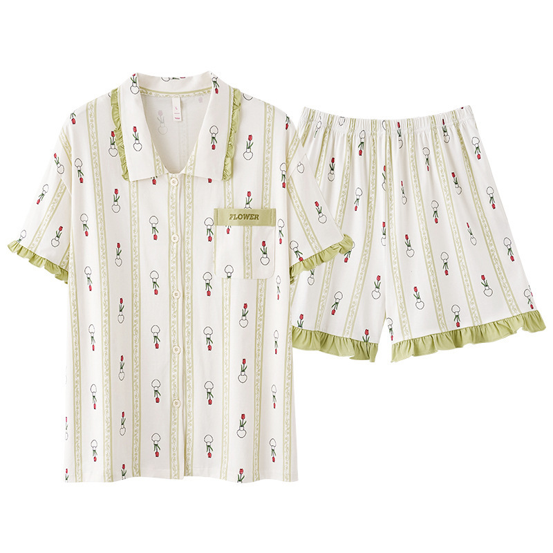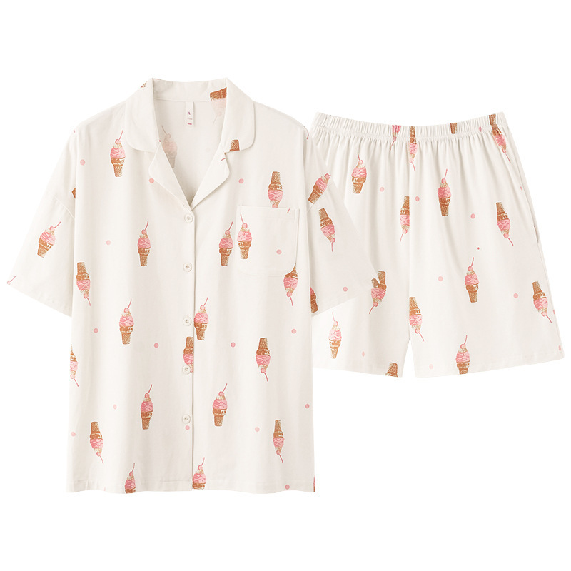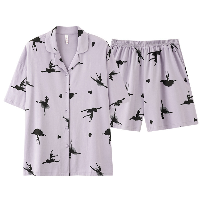[깨진 코드 혜택] 풀업 코튼 커플 순면 잠옷 코튼 모 여성 및 남성 반팔 봄 여름 집 밖에서 착용 가능