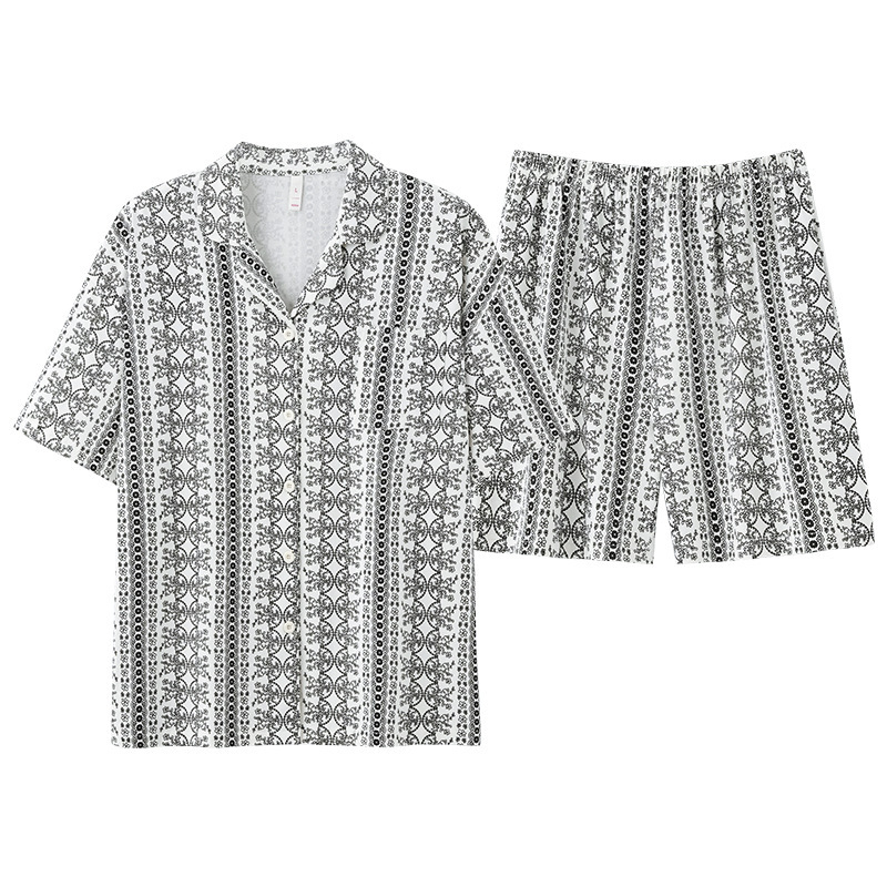 [깨진 코드 혜택] 풀업 코튼 커플 순면 잠옷 코튼 모 여성 및 남성 반팔 봄 여름 집 밖에서 착용 가능스토어 가기