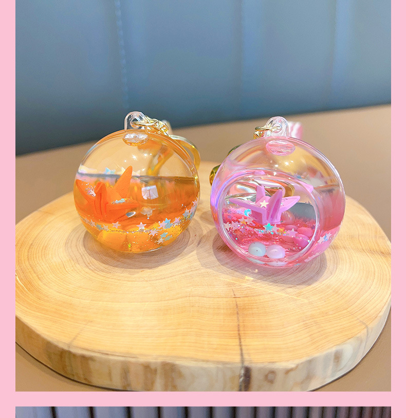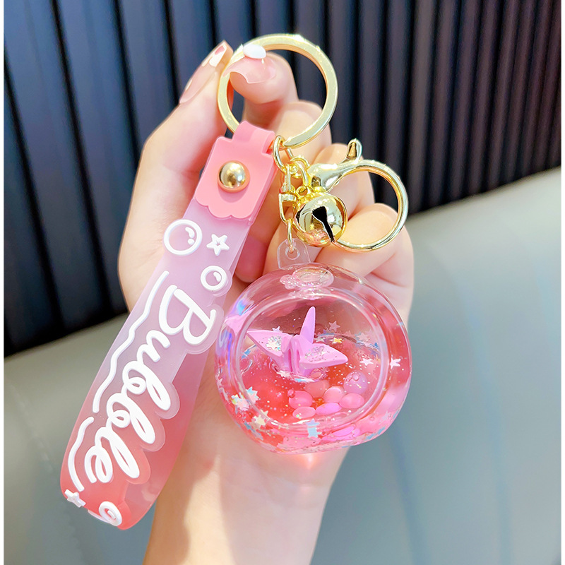 창조적 인 새로운 오일 충전 종이 크레인 열쇠 고리 절묘한 귀여운 액체 quicksand 펜던트 가방 액세서리 선물 공급스토어 가기