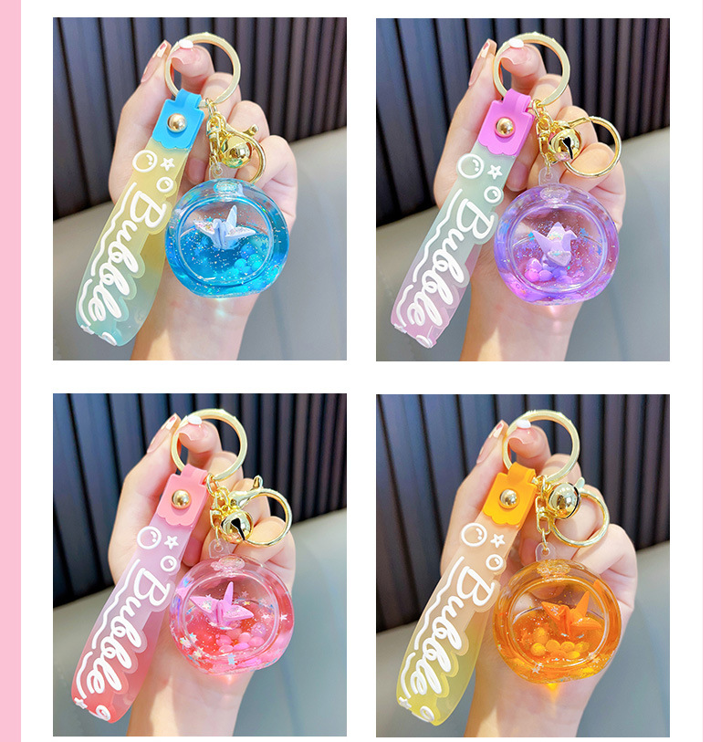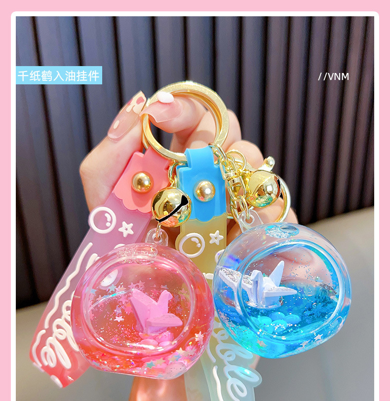 창조적 인 새로운 오일 충전 종이 크레인 열쇠 고리 절묘한 귀여운 액체 quicksand 펜던트 가방 액세서리 선물 공급