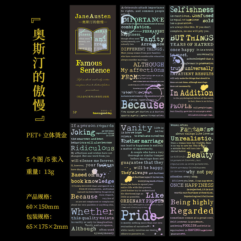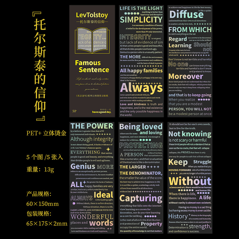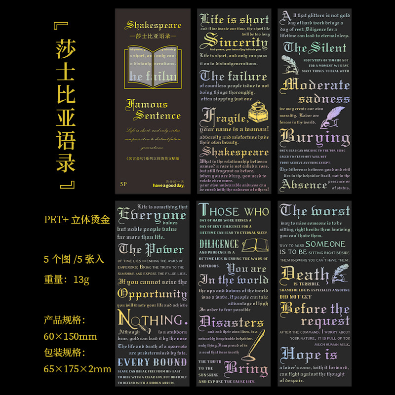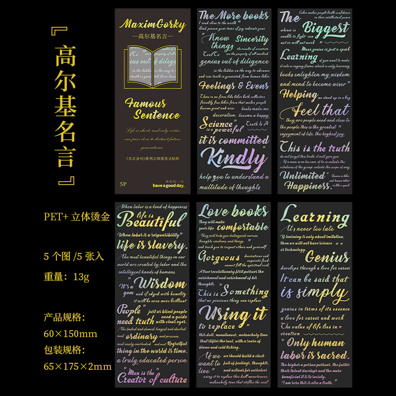 아름다운 날 금박을 입힌 영어 PET 스티커 유명한 단어 금 문장 시리즈 손 계정 재료 장식 뒷면 스티커 6