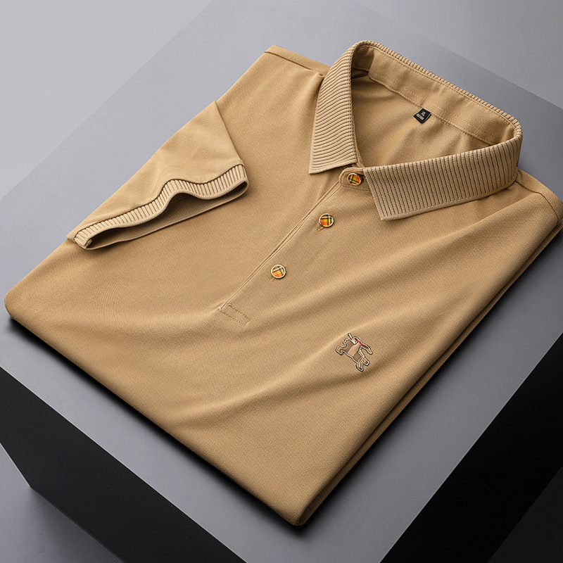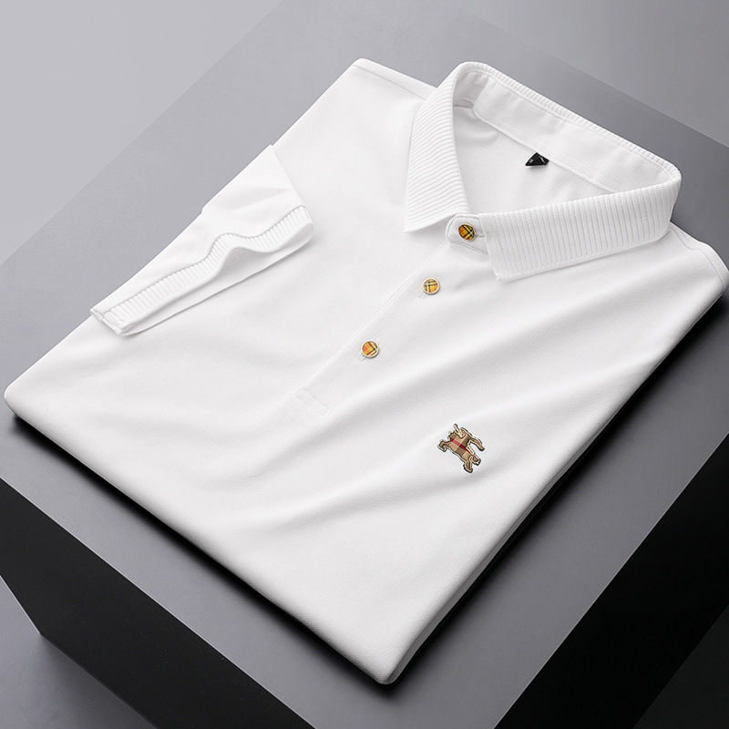 고급 유럽 용품 말 폴 셔츠 아이스 폴로 셔츠 남성용 반팔 여름 얇은 아이스 실크 라펠 티셔츠