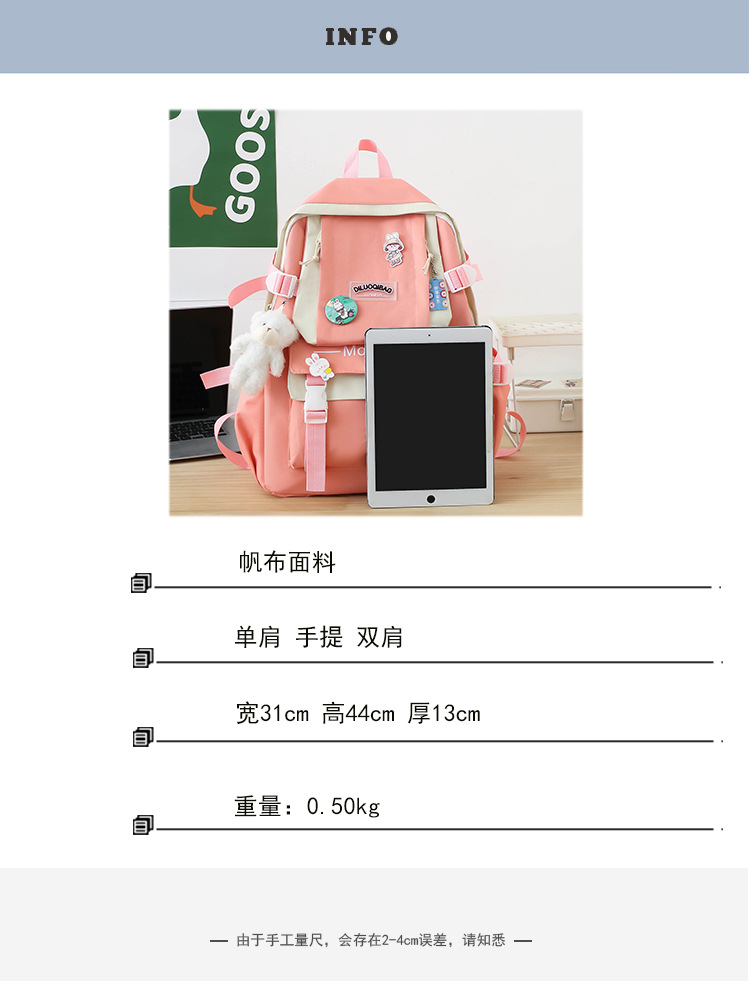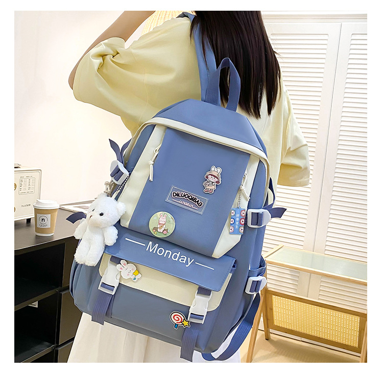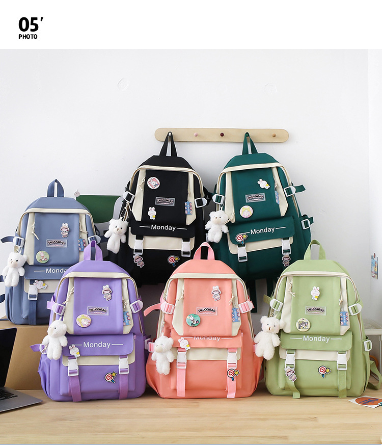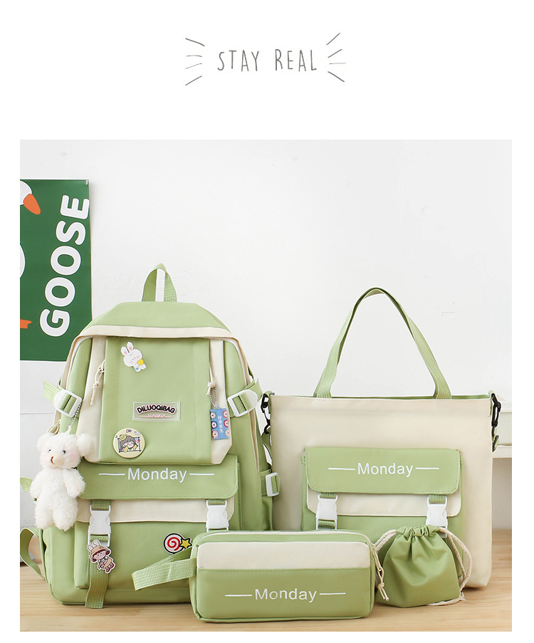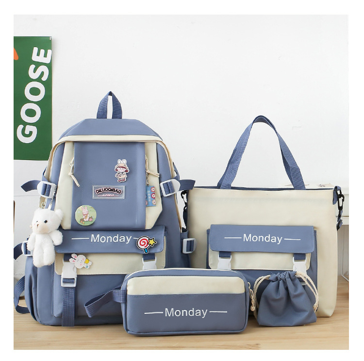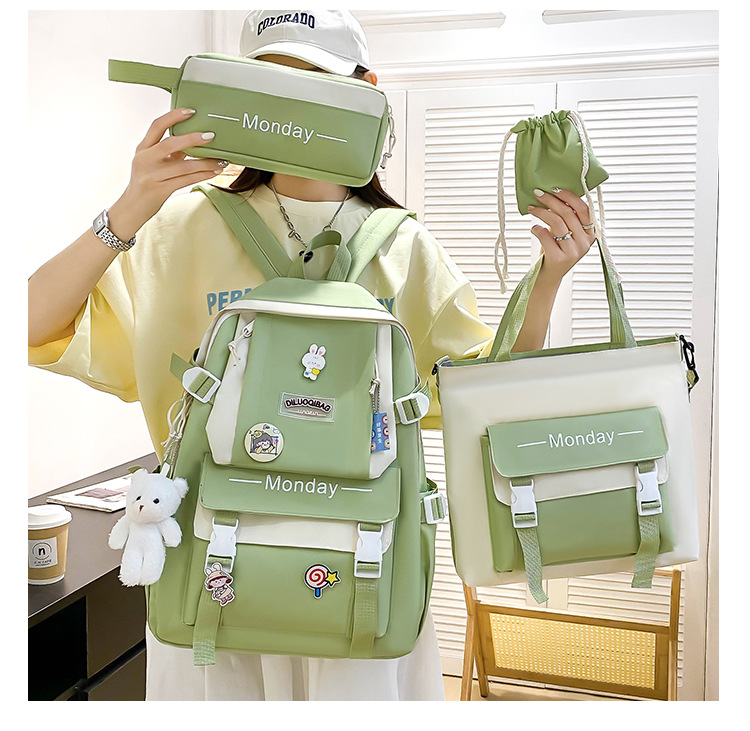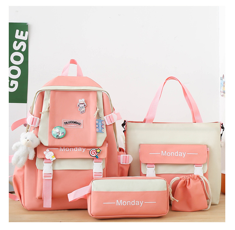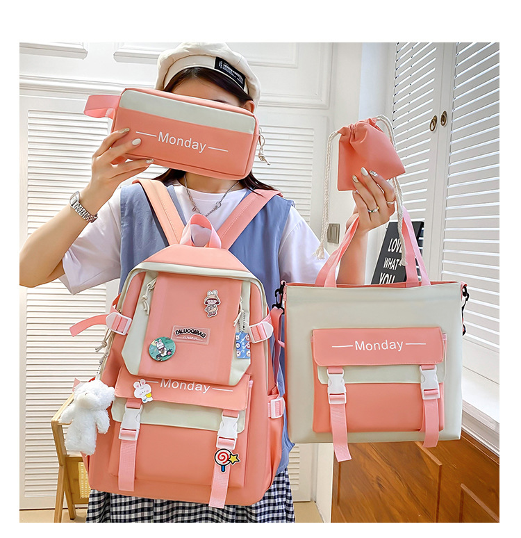 4 피스 책가방 여성용 모리 스타일 만능 초등학생 배낭 핸드백 유행 컬러 매칭 대용량 중학교 배낭스토어 가기