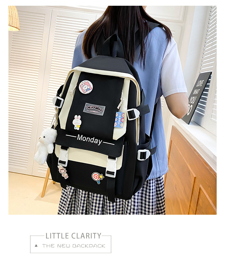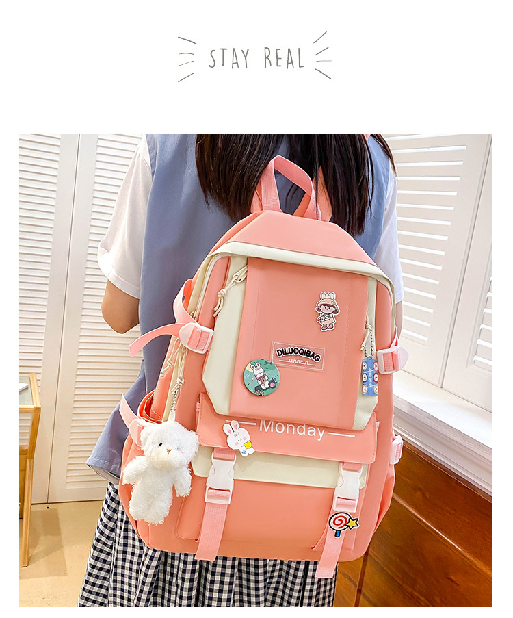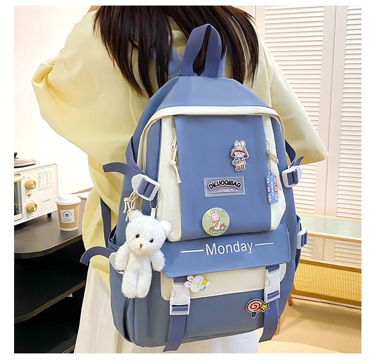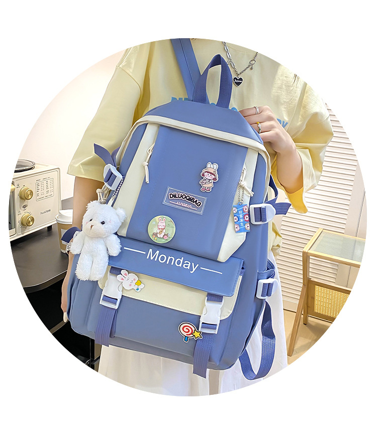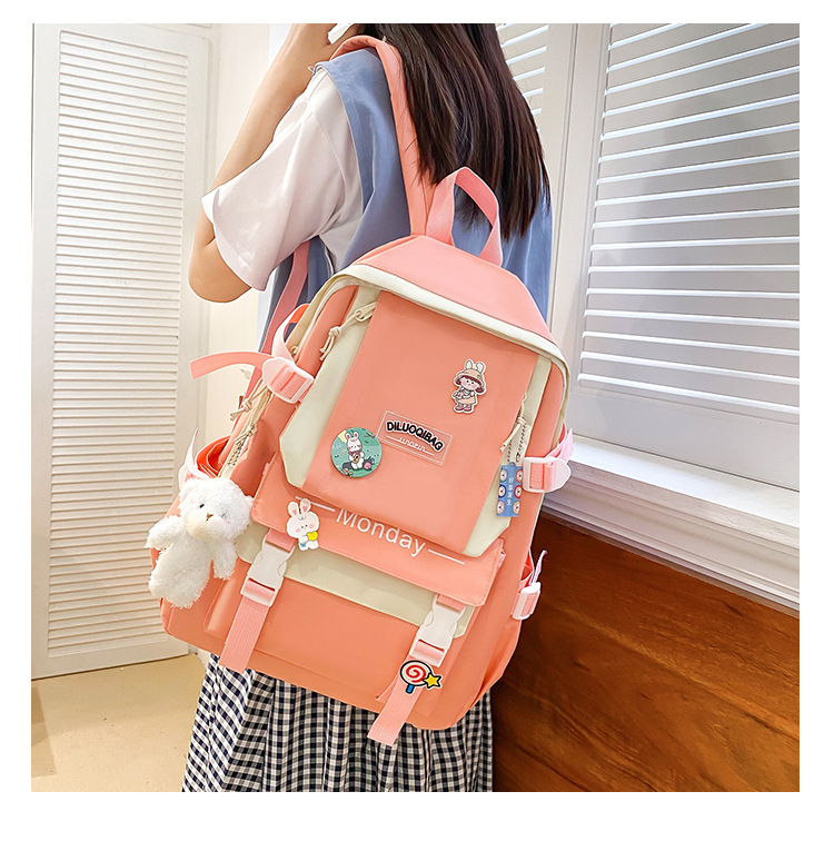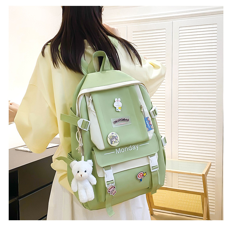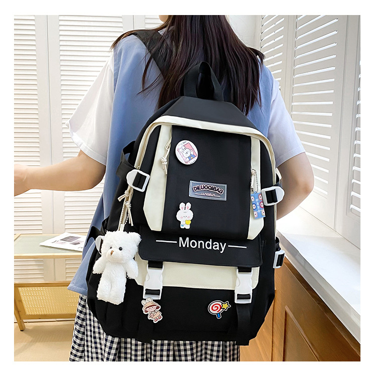 4 피스 책가방 여성용 모리 스타일 만능 초등학생 배낭 핸드백 유행 컬러 매칭 대용량 중학교 배낭스토어 가기