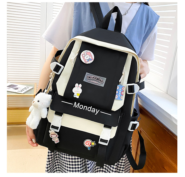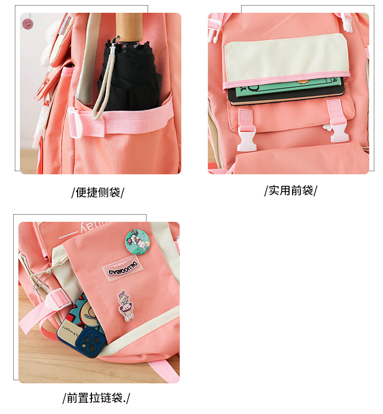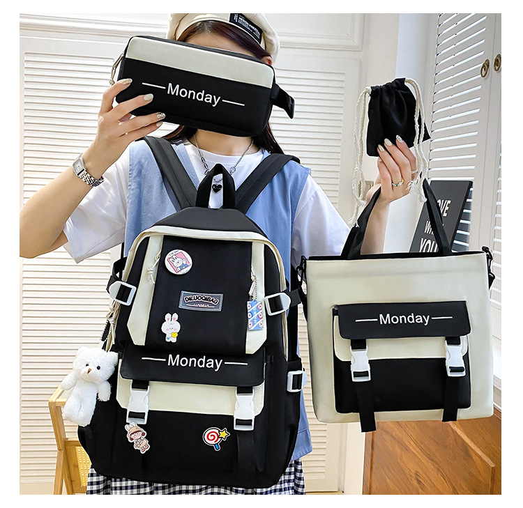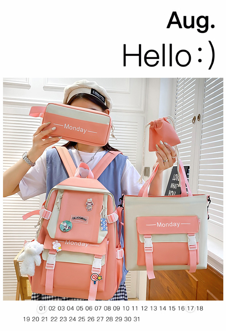 4 피스 책가방 여성용 모리 스타일 만능 초등학생 배낭 핸드백 유행 컬러 매칭 대용량 중학교 배낭