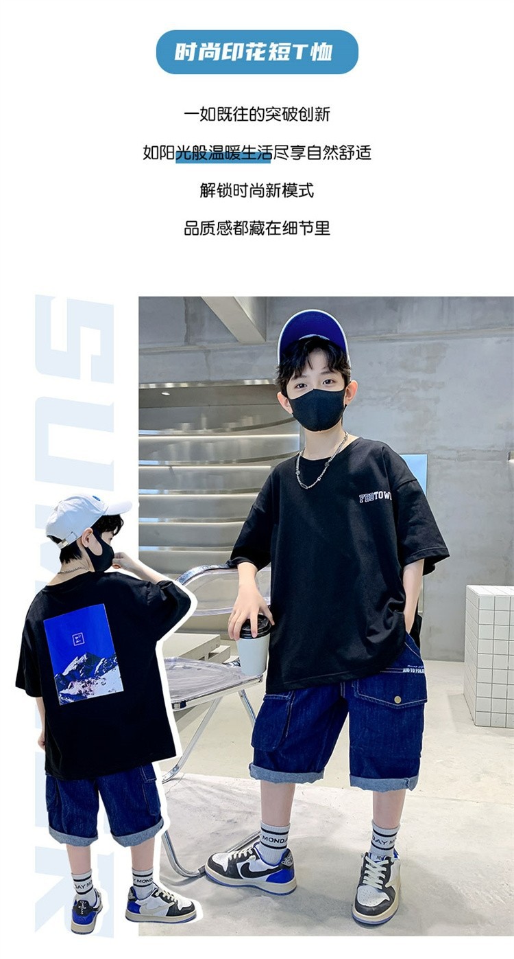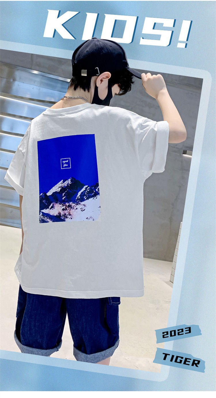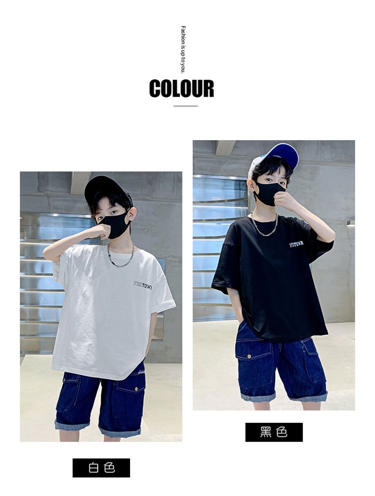 남아 반팔 티셔츠 티셔츠 어린이 반팔 셔츠 라운드 넥 INS 새로운 스타일 중대형 어린이 여름 원피스 잘 생긴 소년 만화스토어 가기