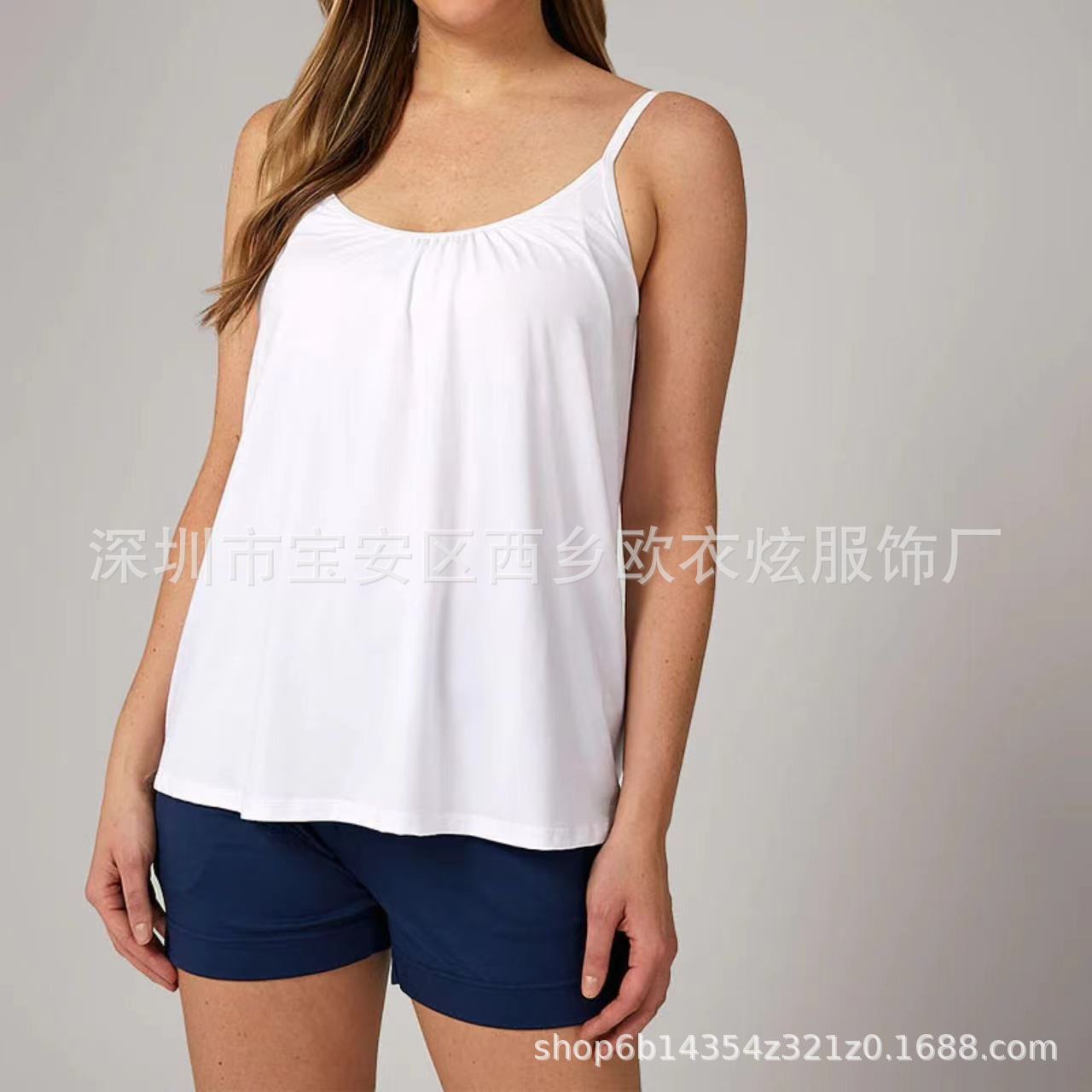 2023 루즈한 모달 논테 브라 프리 컵 원피스 가슴 패드 캐미솔 여성 하의 요가 조끼