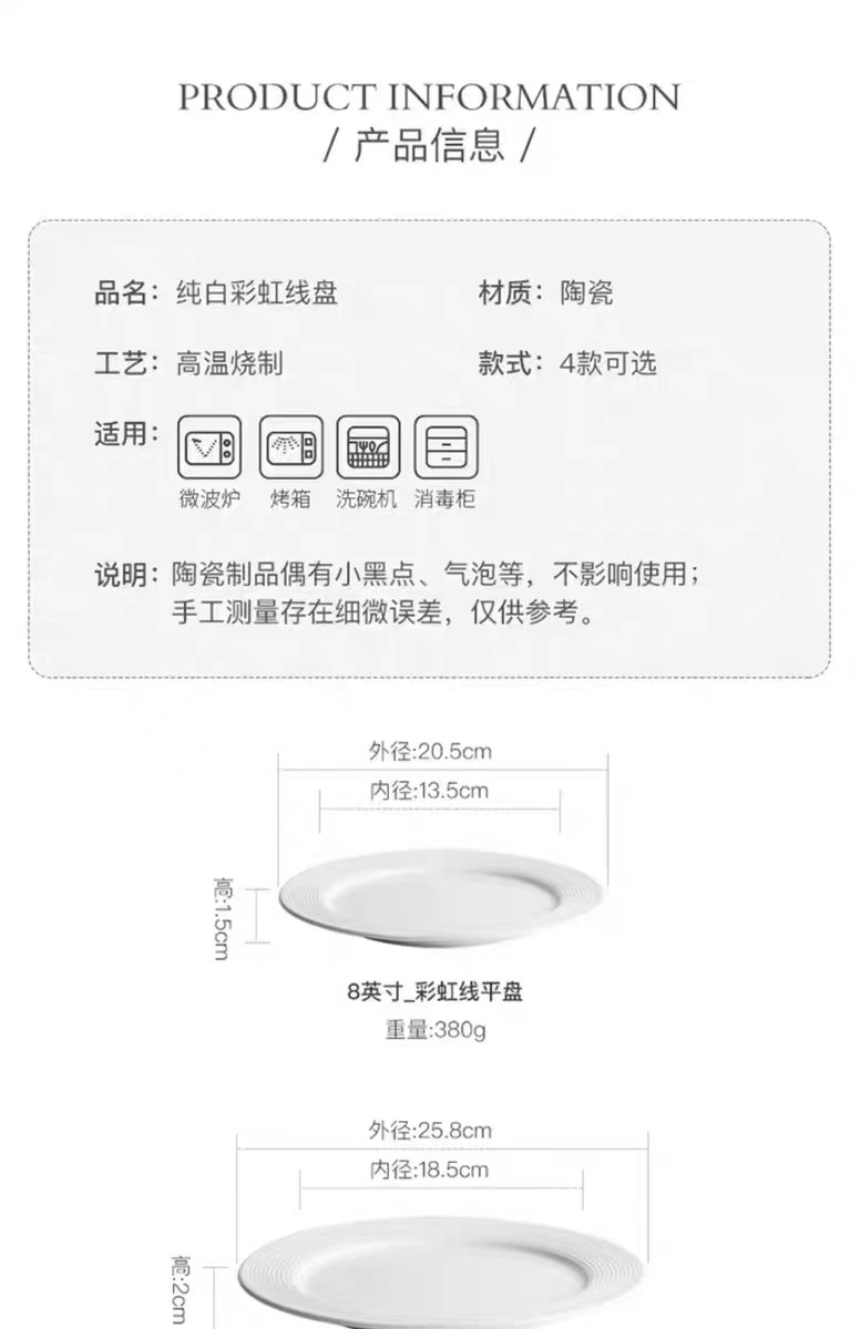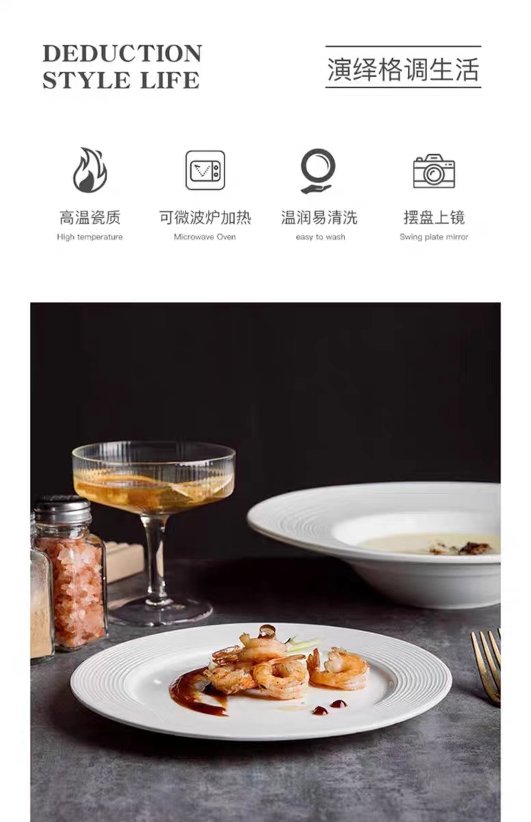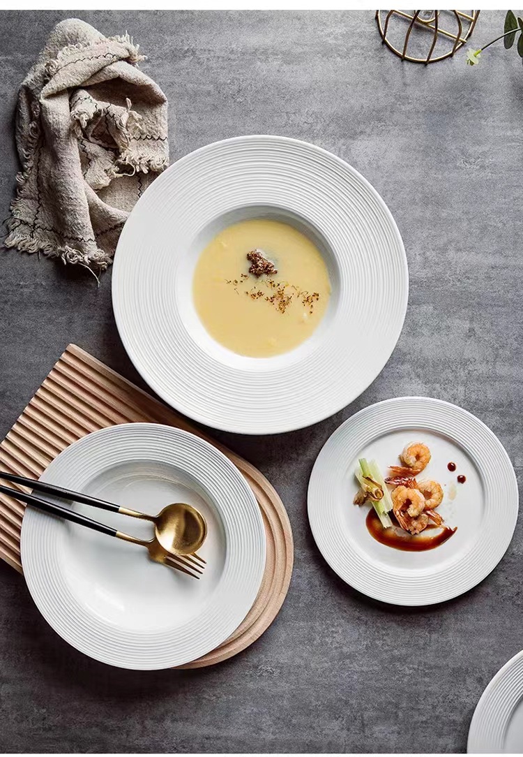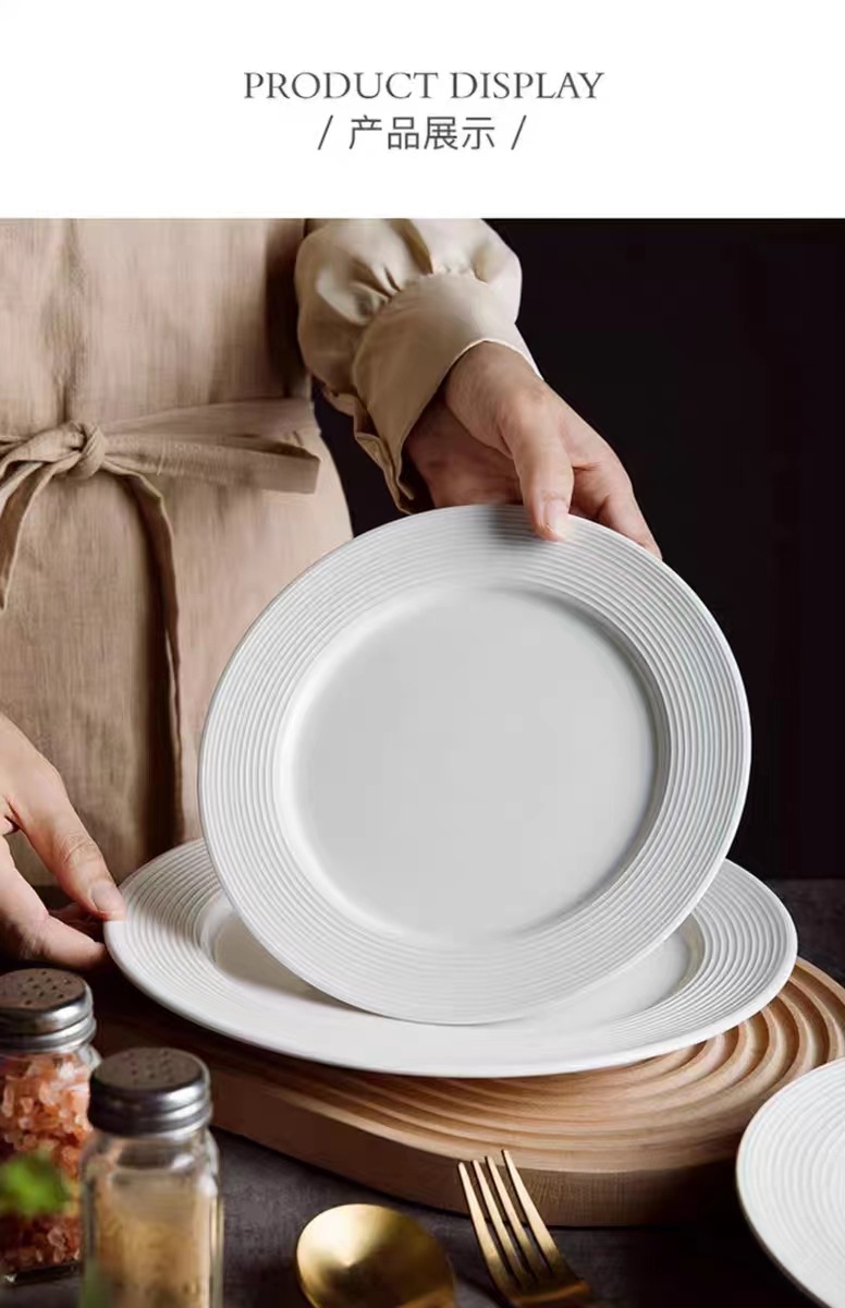 간단한 북유럽 스타일 스테이크 디너 플레이트 가정 요리 돼지 접시 순수 흰색 플레이트 플랫 플레이트 세라믹 창조적 인 서양 접시 상업스토어 가기