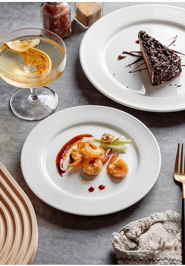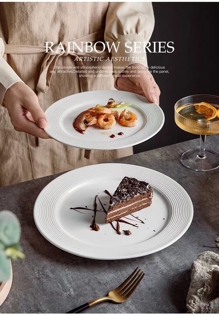 간단한 북유럽 스타일 스테이크 디너 플레이트 가정 요리 돼지 접시 순수 흰색 플레이트 플랫 플레이트 세라믹 창조적 인 서양 접시 상업