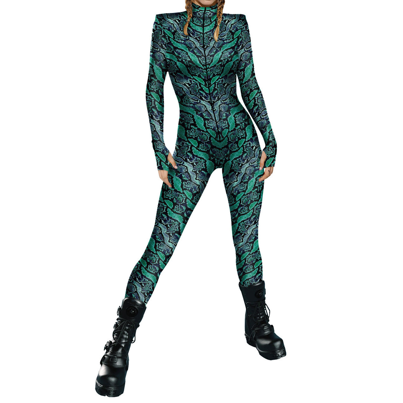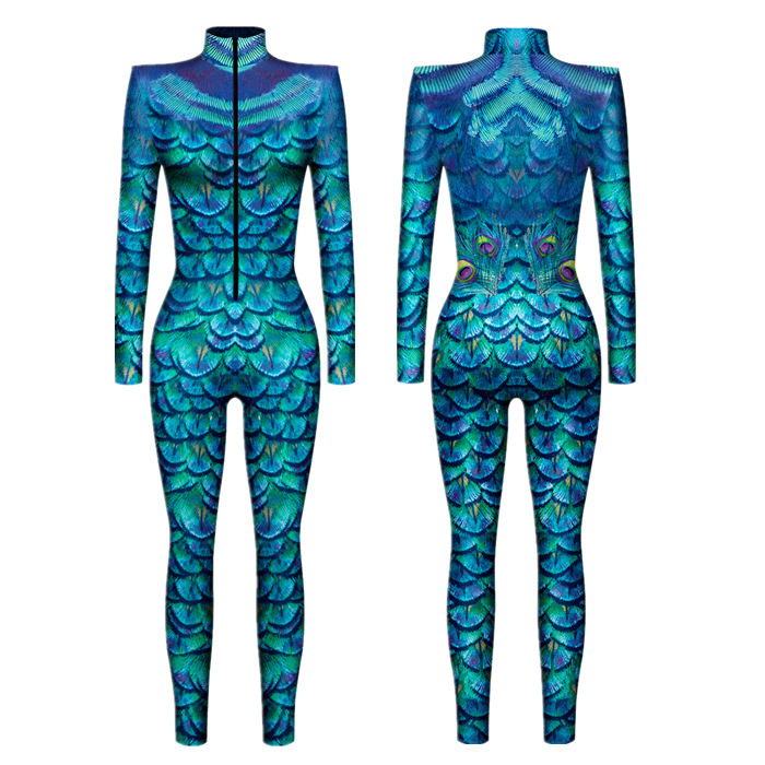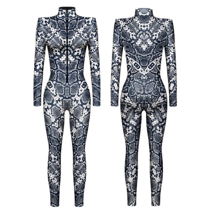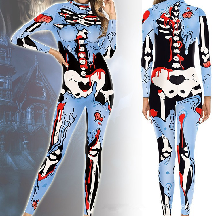 새로운 대외 무역 할로윈 해골 3D 디지털 인쇄 슬림 핏 긴팔 점프 수트스토어 가기