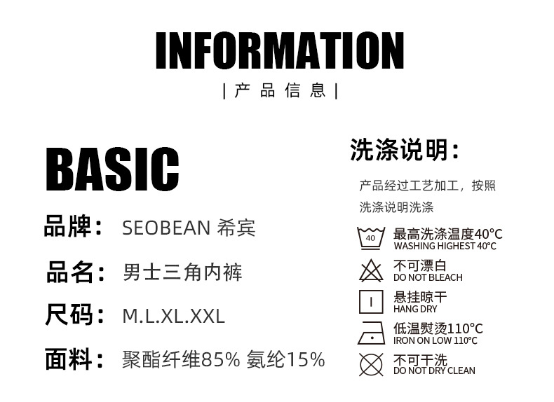 SEOBEAN Xibin 2023 여름 새로운 작은 삼각형 속옷 섹시한 낮은 허리 디지털 인쇄 대외 무역 남성 속옷