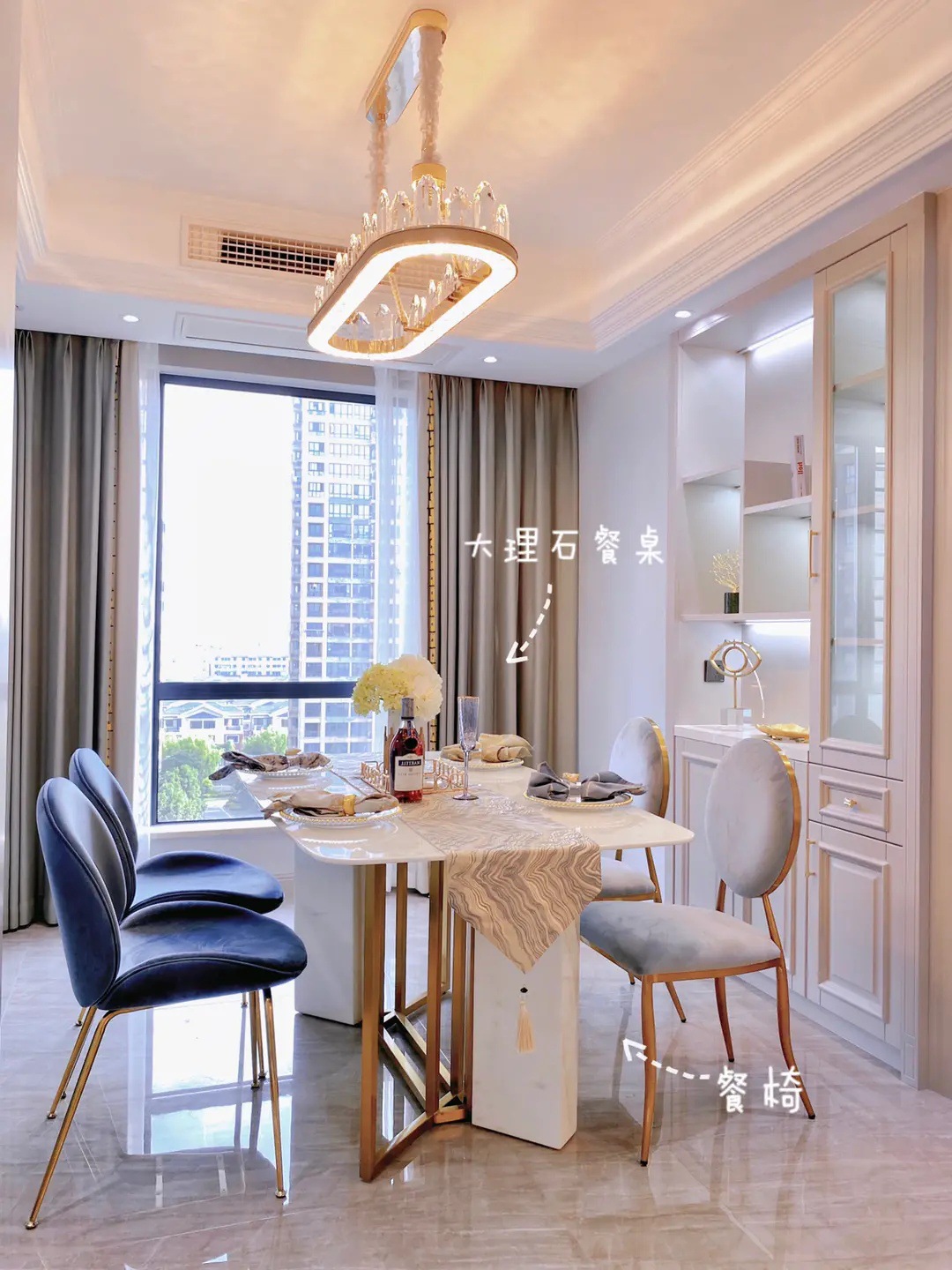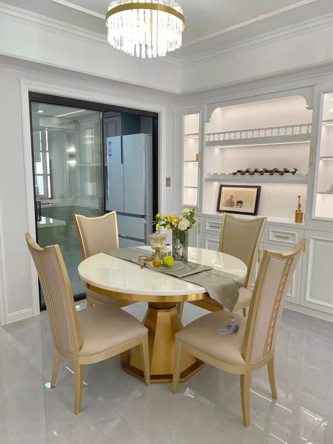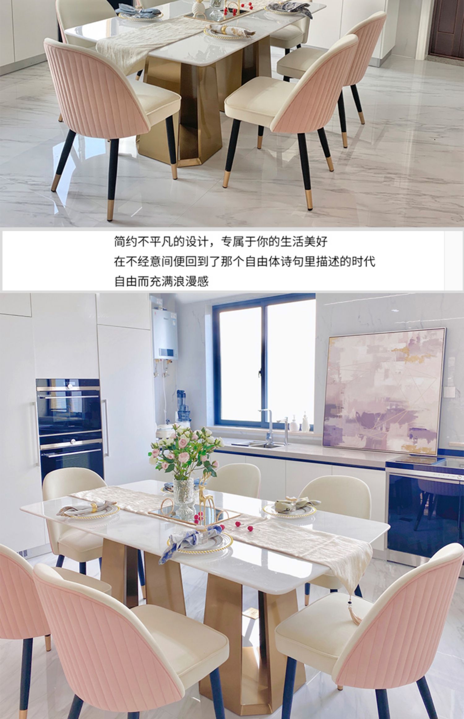 아메리칸 스타일 라이트 럭셔리 식탁과 의자 조합 현대 프랑스 스타일 간단한 대리석 긴 식탁 6 개의 의자가있는 단단한 나무 식당 의자