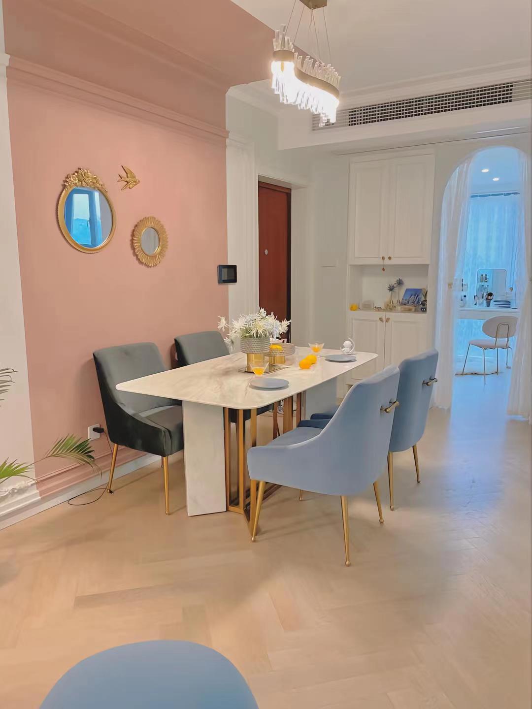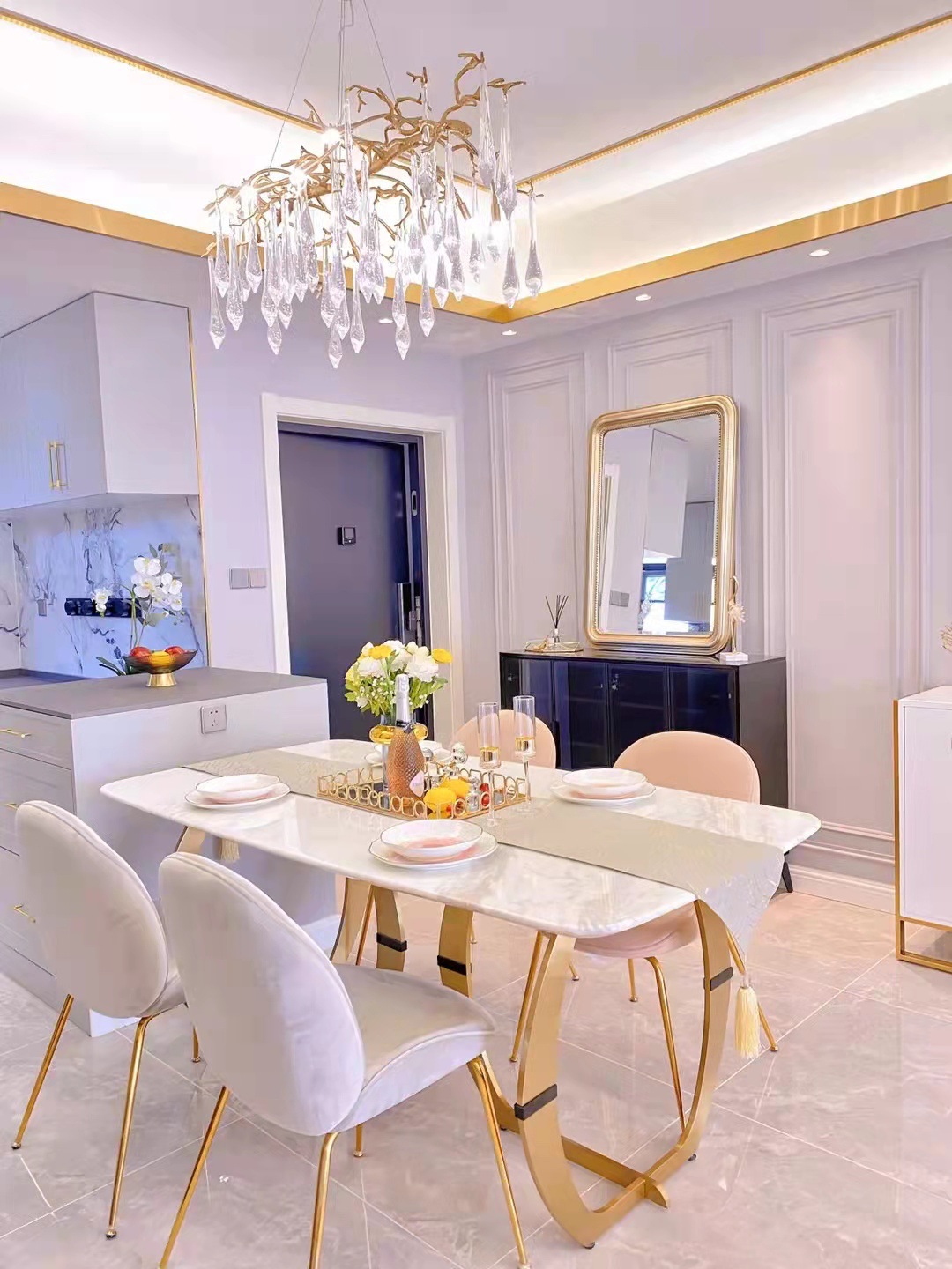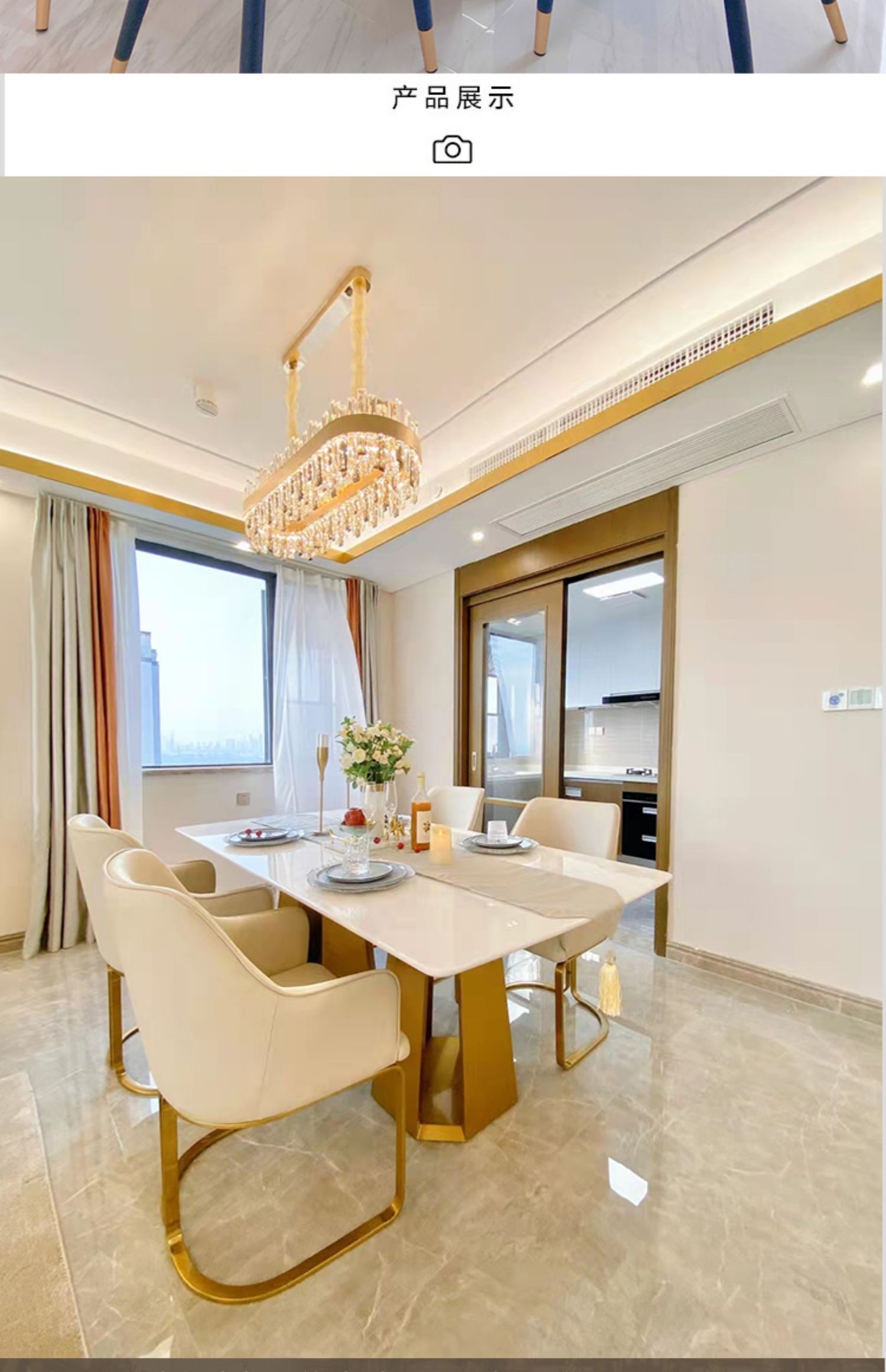 아메리칸 스타일 라이트 럭셔리 식탁과 의자 조합 현대 프랑스 스타일 간단한 대리석 긴 식탁 6 개의 의자가있는 단단한 나무 식당 의자