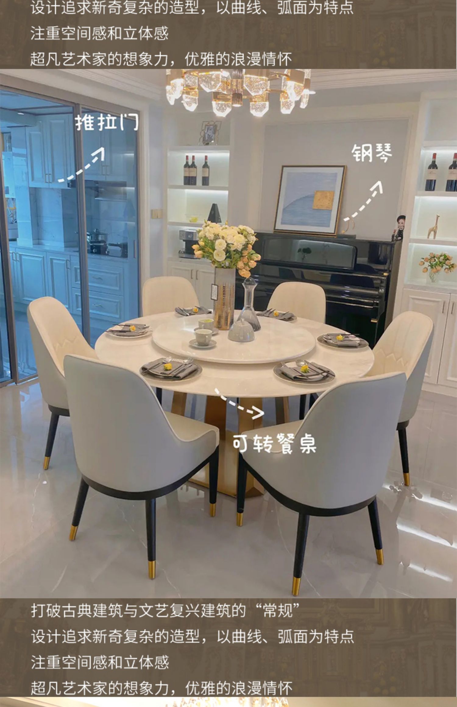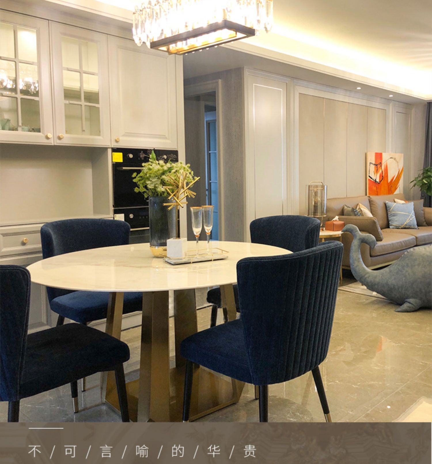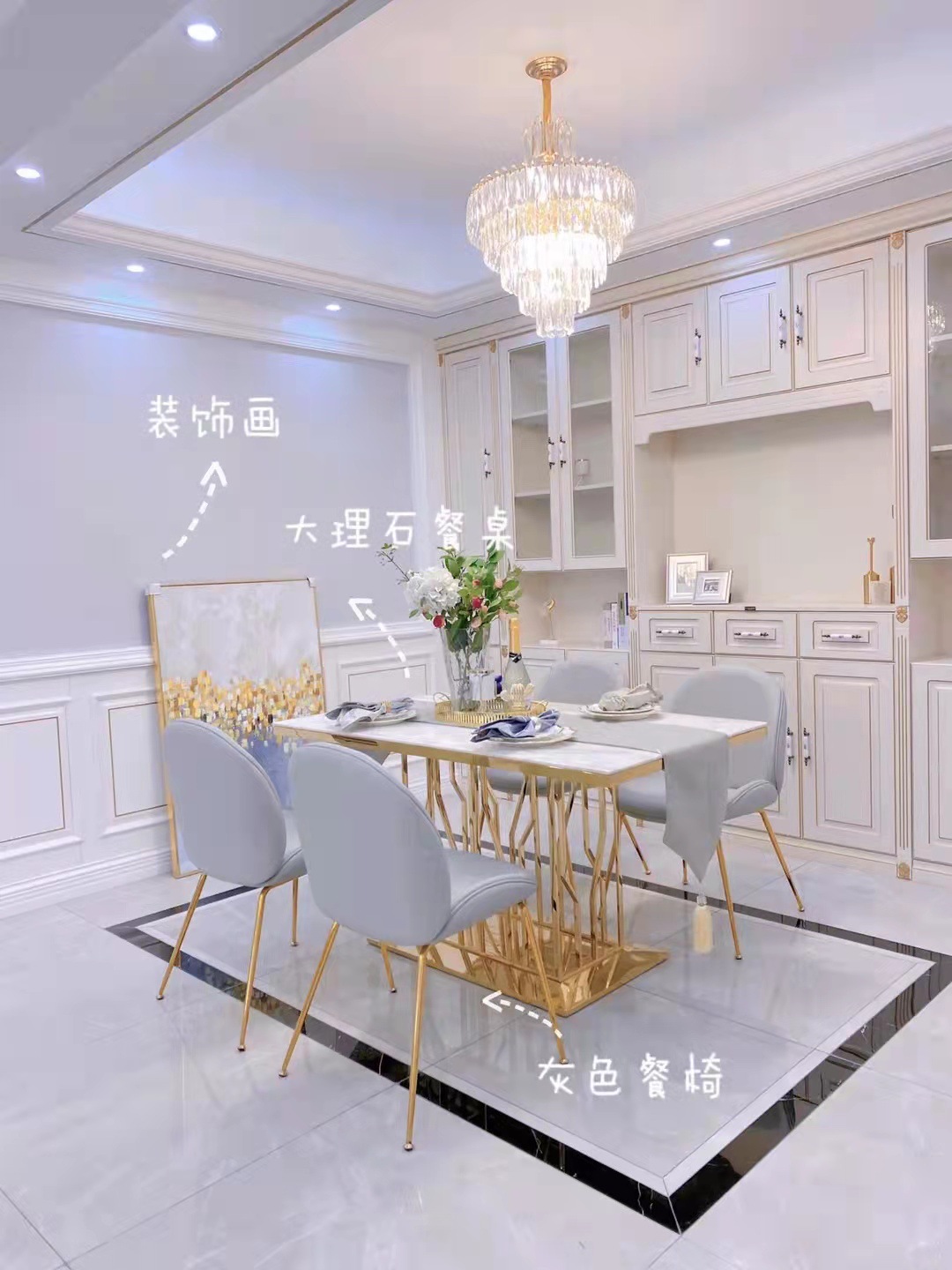 아메리칸 스타일 라이트 럭셔리 식탁과 의자 조합 현대 프랑스 스타일 간단한 대리석 긴 식탁 6 개의 의자가있는 단단한 나무 식당 의자스토어 가기