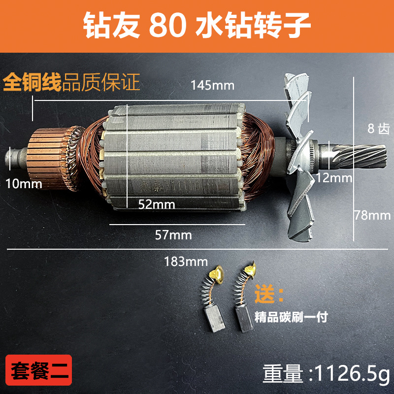 概要: 采用耐高温包线全铜,动力强劲,作业效率高,品质保证,转子绕组采用点焊连接,不虚焊,转子表面光洁无残留铁屑,电脑喷码字迹清晰易识别,做工平整,轴心垂直,采用合金钢具有高强度和好的切削加工性严格按照国家标准,加厚包装,安全防护,经过严格的热处理程序,转子形成了韧性高,量大从优,欢迎各地经销商前来选购。