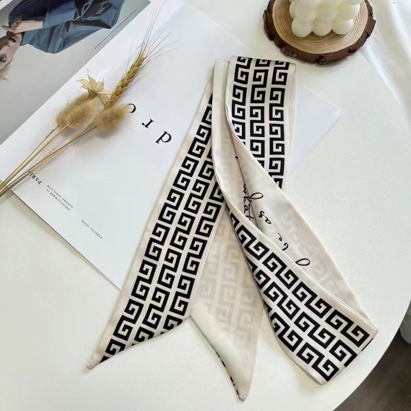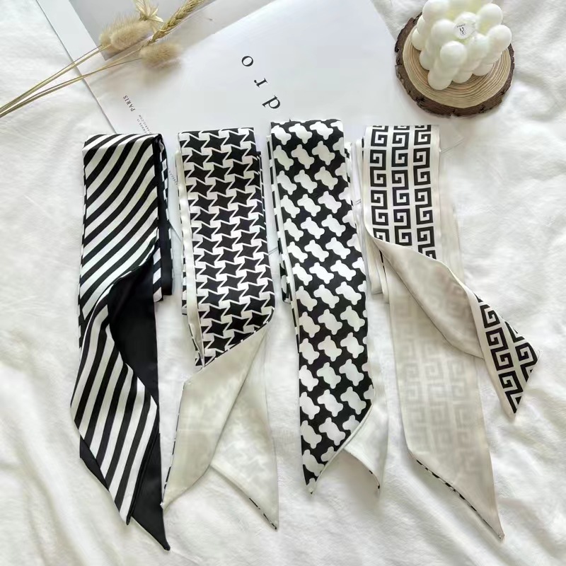 간단한 흑백 스트라이프 실크 스카프 헤어 밴드 새로운 스타일 소녀의 하이 스타일 클래식 모든 매치 장식 스카프 타이 백 헤어 액세서리