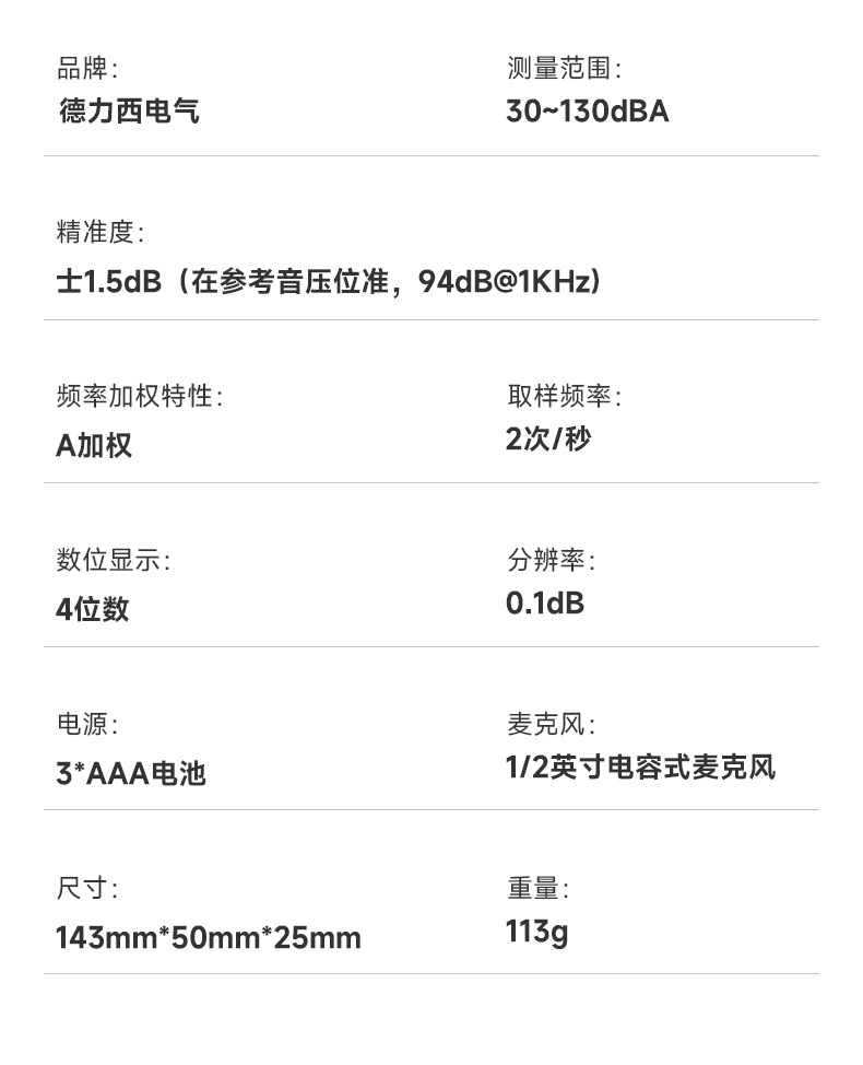 德力西数字式噪音计家用分贝仪检测仪专业噪声音量测试仪批发