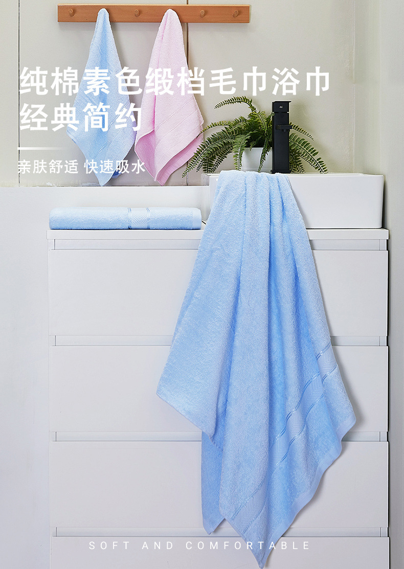 시계 414 추출 순면 목욕 타올 블루 파우더 단색 새틴 흡수성 타월 기숙사 청소년 편안한 독립 포장스토어 가기