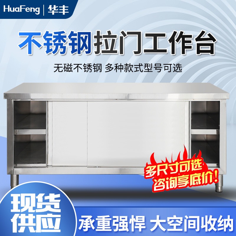 스테인리스 슬라이딩 도어 작업대 상업용 주방 채소 절단 테이블 슬라이딩 도어 보관 캐비닛 호텔 전용