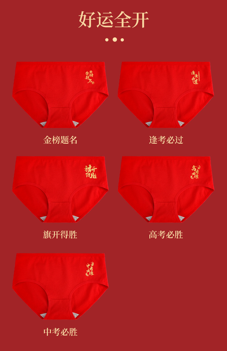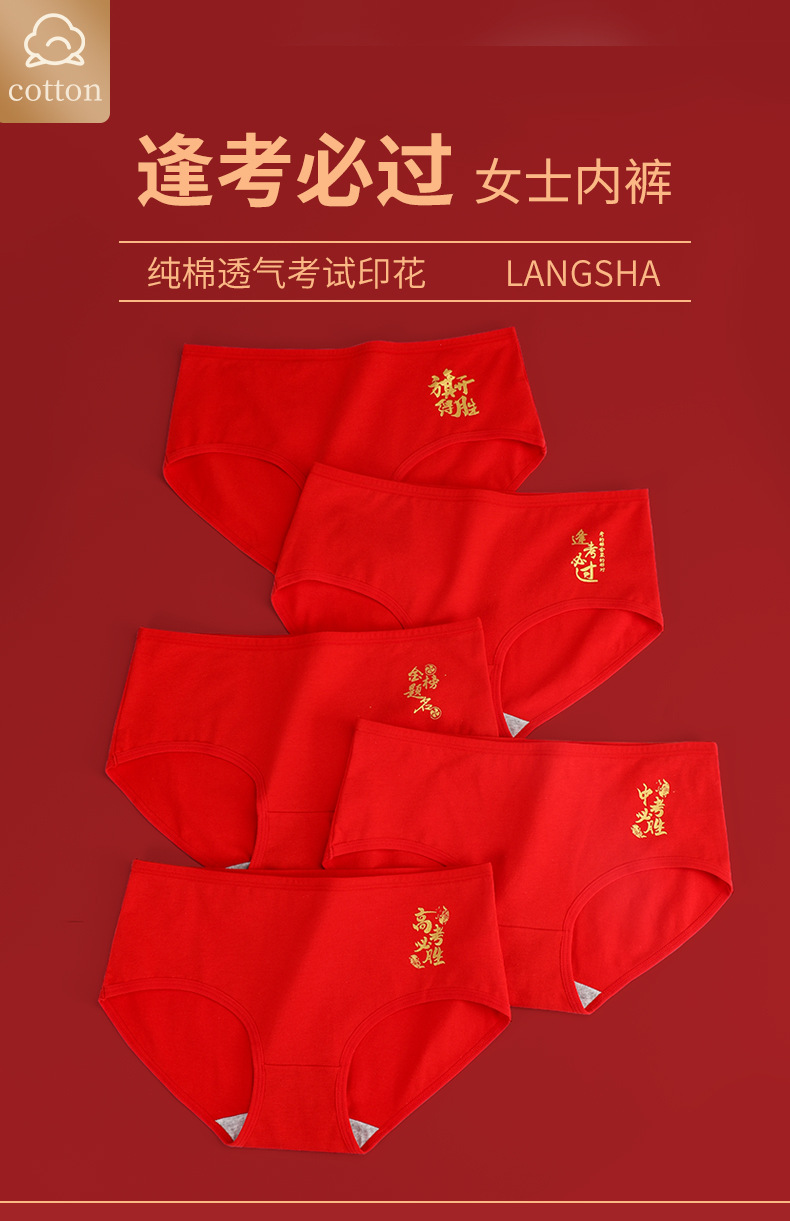 Longsha 대학 입학 시험 속옷 여자 순면 고등학교 입학 시험 우승 학생들은 여아 시험을 통과해야합니다 큰 빨간 삼각형 반바지스토어 가기