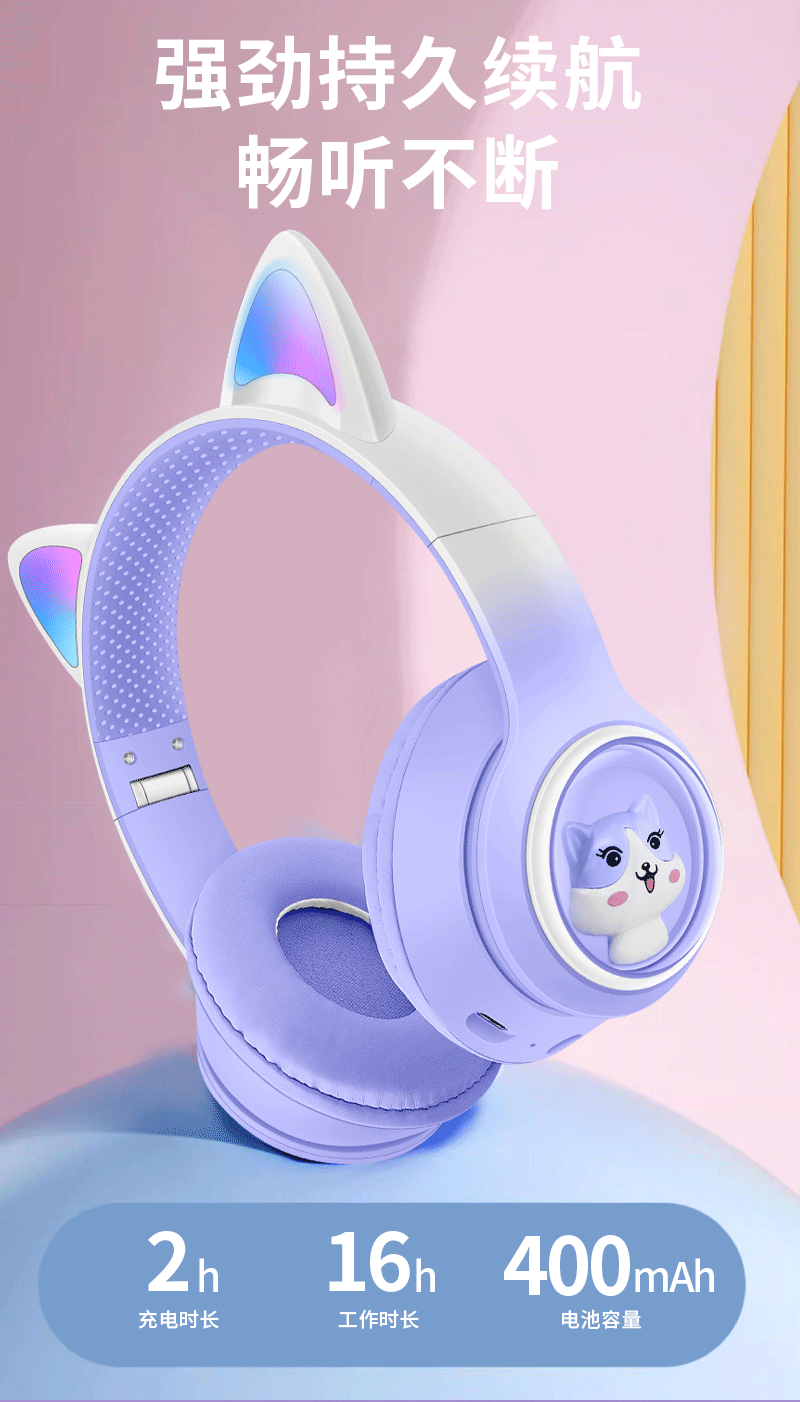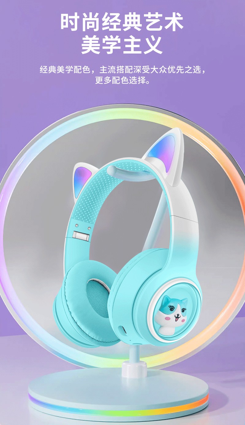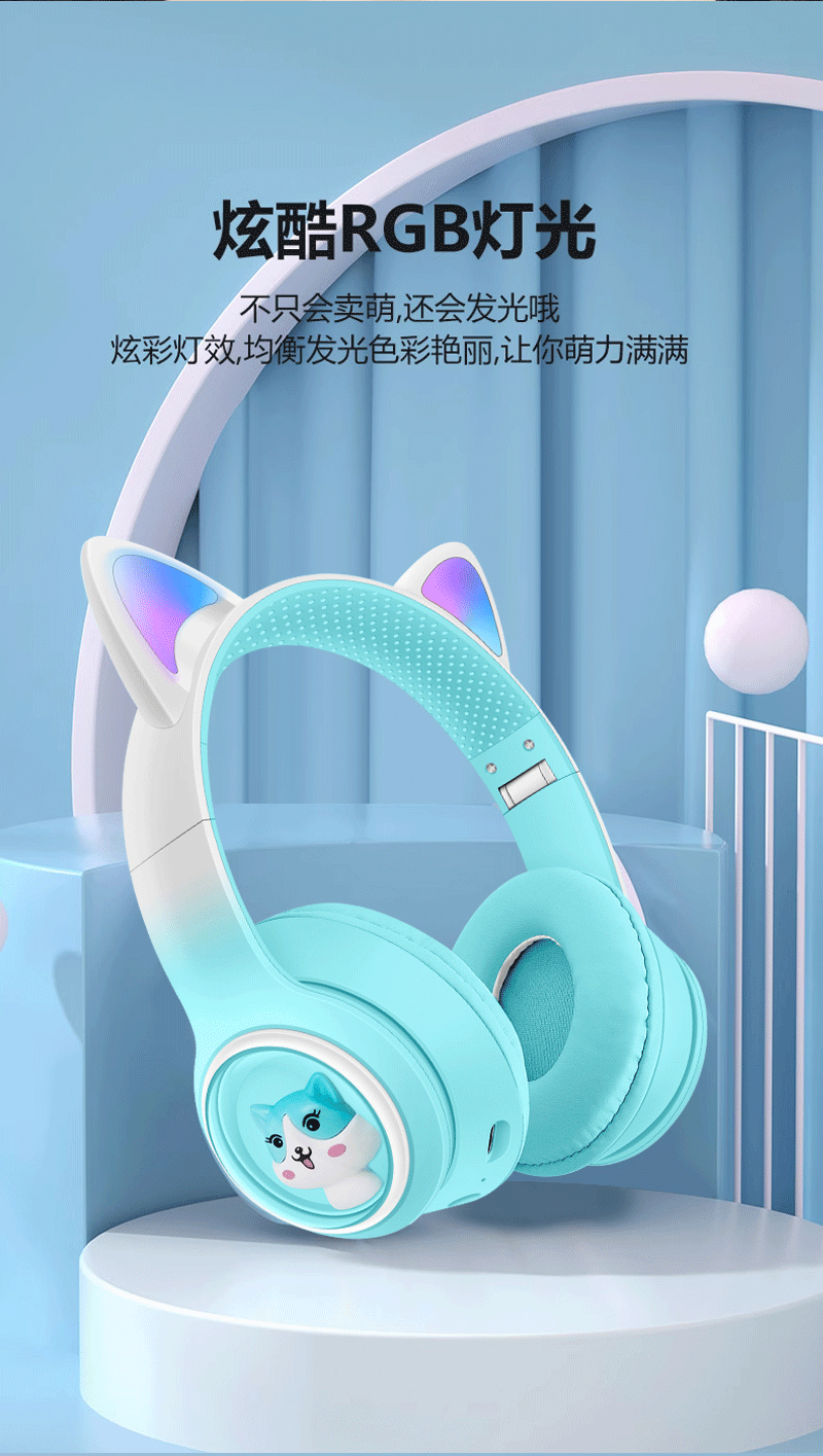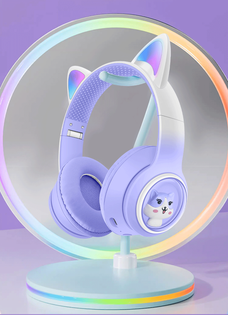 AKZ-02 새로운 개인 모델 그라데이션 고양이 귀 머리 장착형 블루투스 헤드셋 빛나는 귀여운 어린이 헤드셋 제조 업체