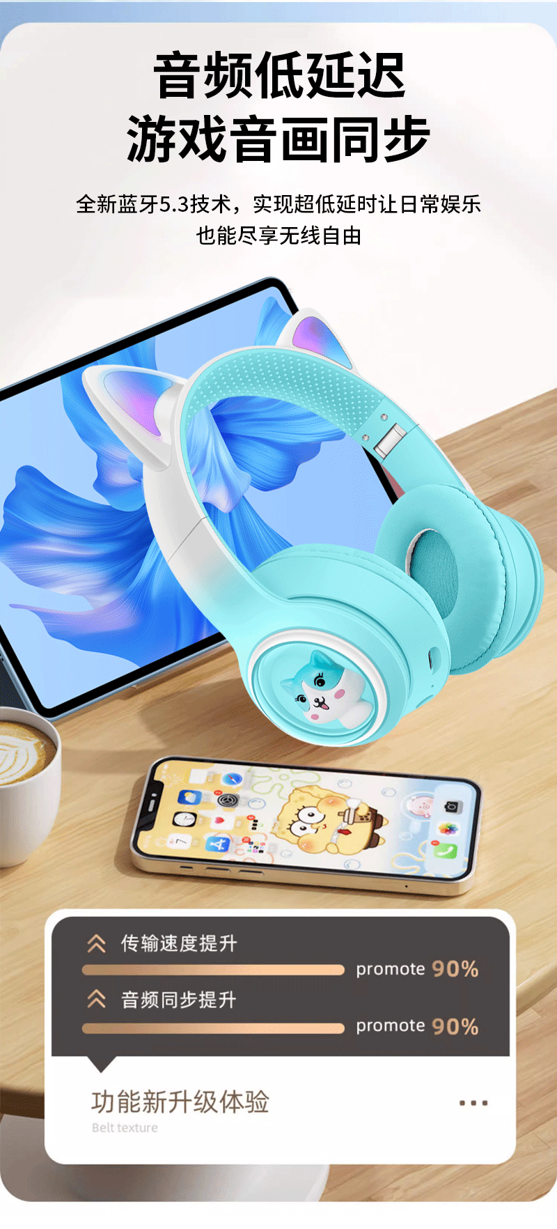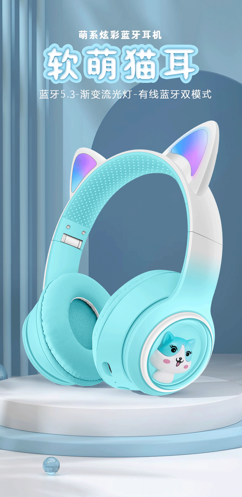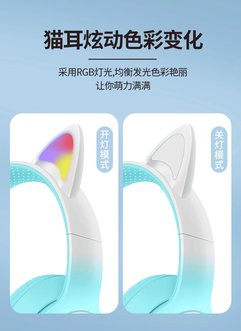 AKZ-02 새로운 개인 모델 그라데이션 고양이 귀 머리 장착형 블루투스 헤드셋 빛나는 귀여운 어린이 헤드셋 제조 업체