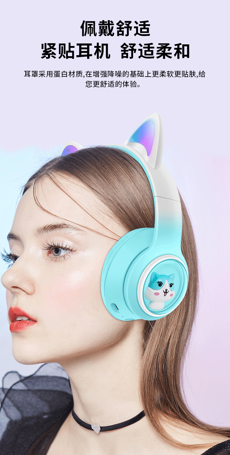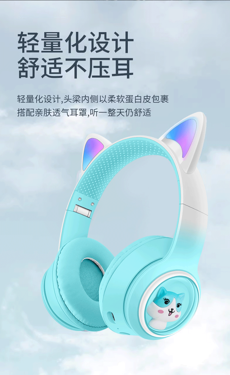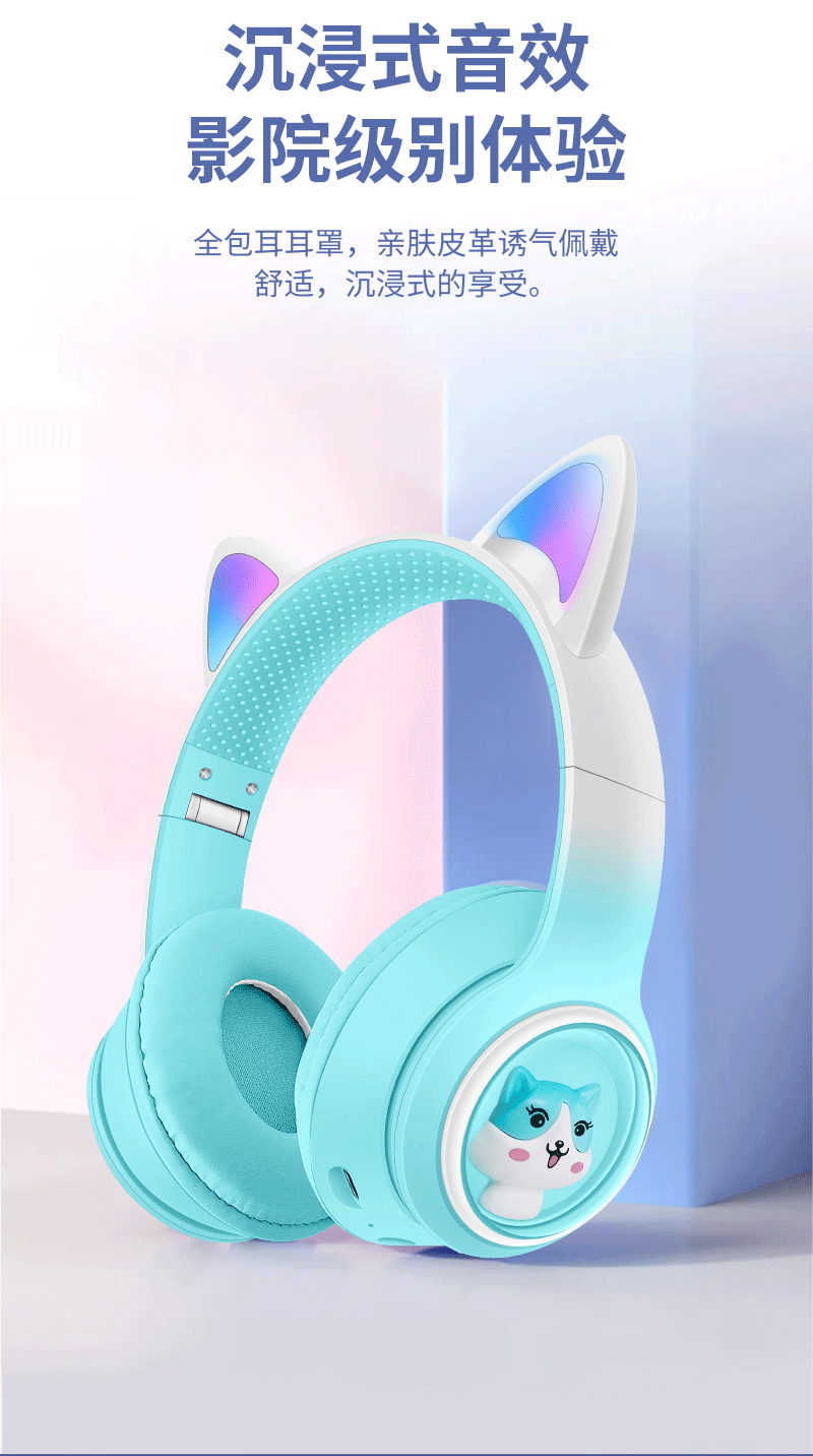 AKZ-02 새로운 개인 모델 그라데이션 고양이 귀 머리 장착형 블루투스 헤드셋 빛나는 귀여운 어린이 헤드셋 제조 업체스토어 가기