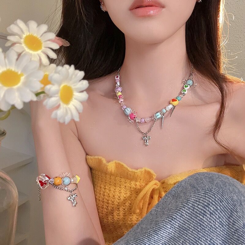 사탕, 여보! 다채로운 활 술 목걸이 여성 틈새 디자인 인터넷 축하 액세서리 달콤한 멋진 향신료 체인
