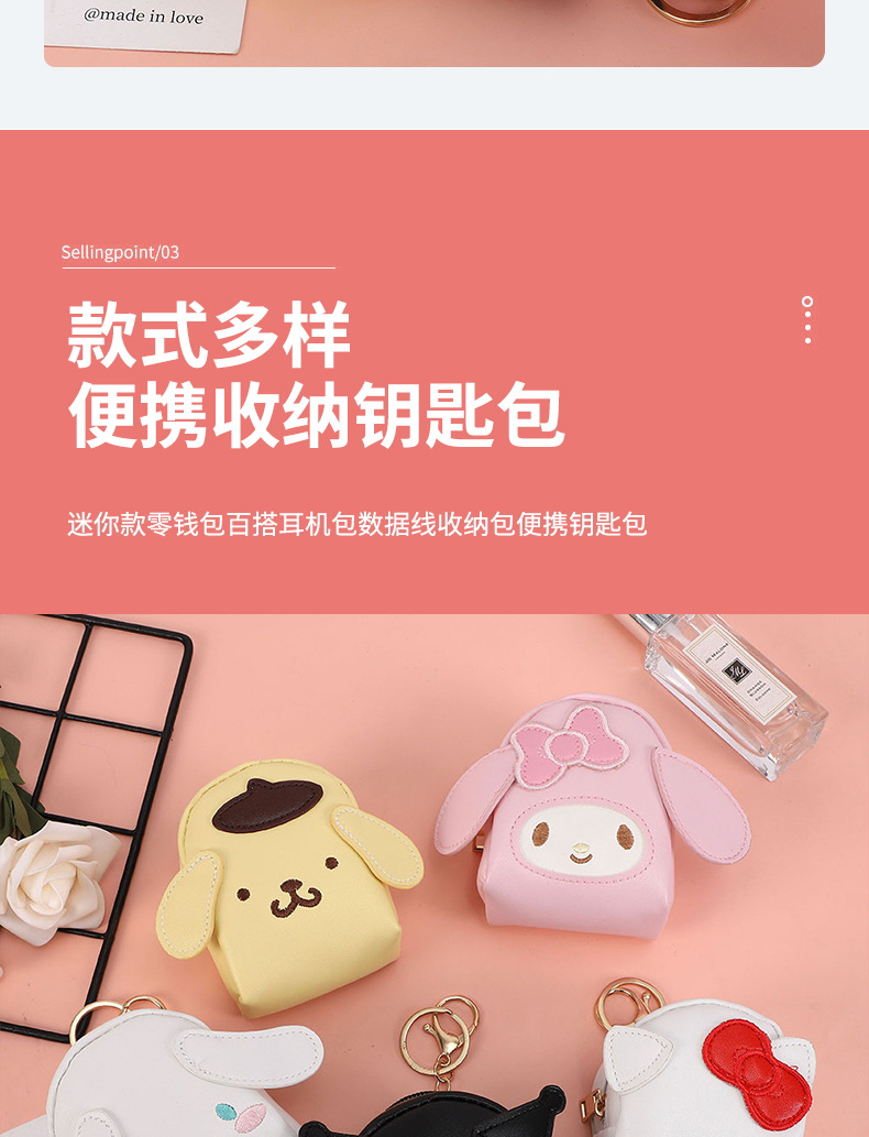 귀여운 미니 산리오 동전 지갑 만능 소형 펜던트 이어폰 가방 데이터 케이블 보관 가방 휴대용 키 가방