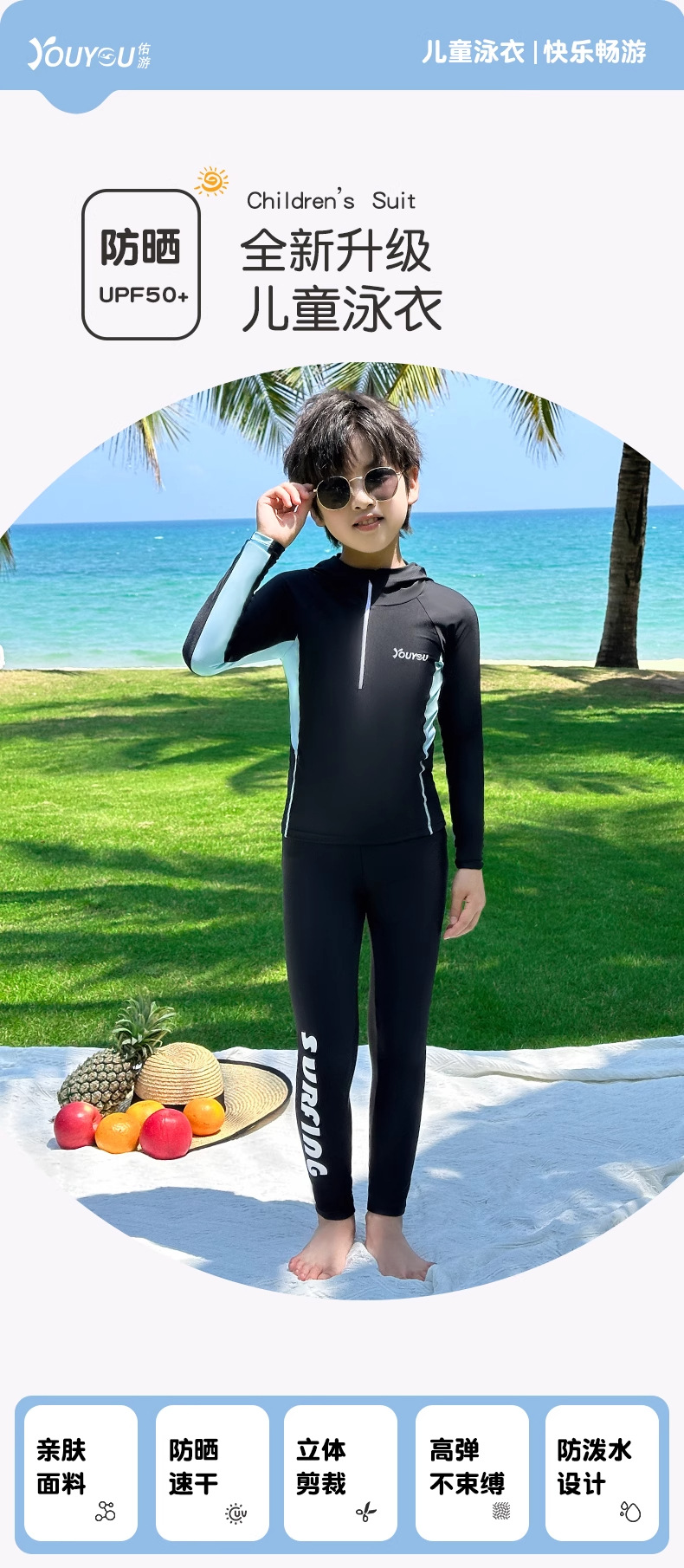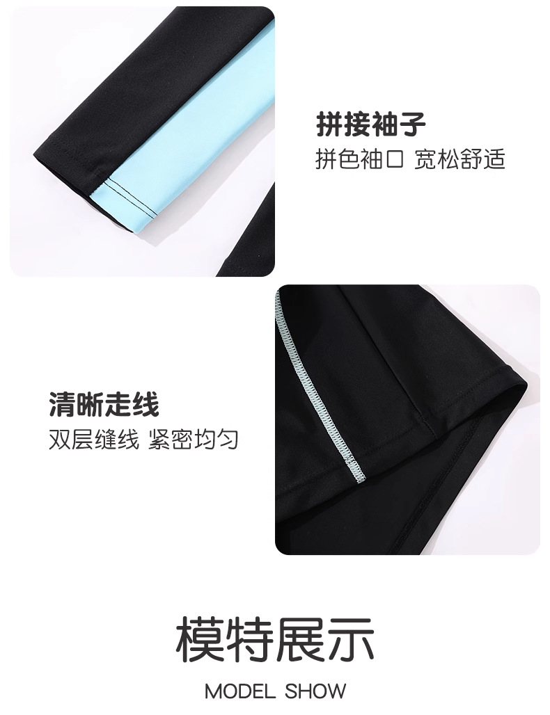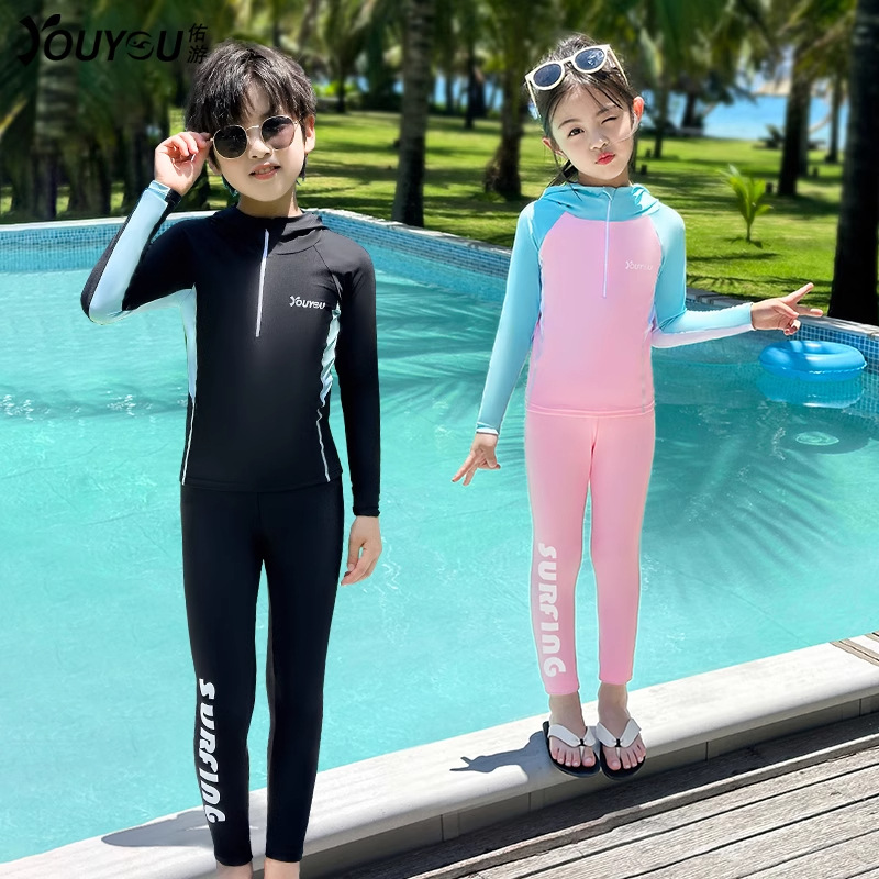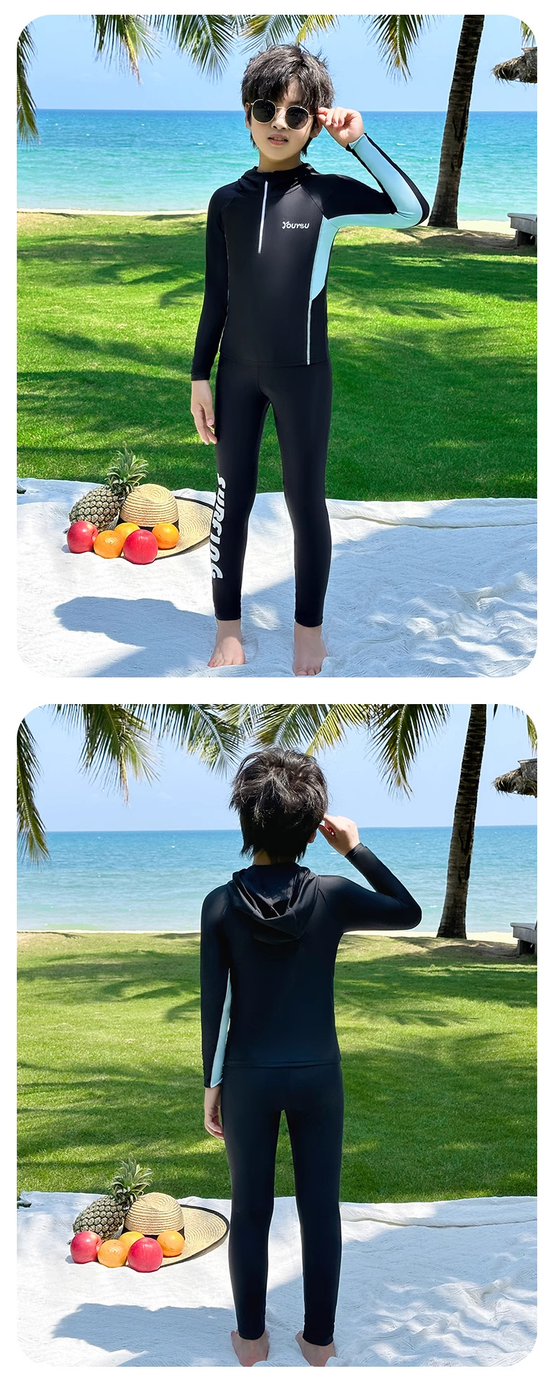어린이 수영복 여성용 스플릿 투피스 긴팔 바지 컬러 매칭 소형, 중형 및 대형 어린이 자외선 차단 라운드 넥 보수적 인 온천 수영복스토어 가기