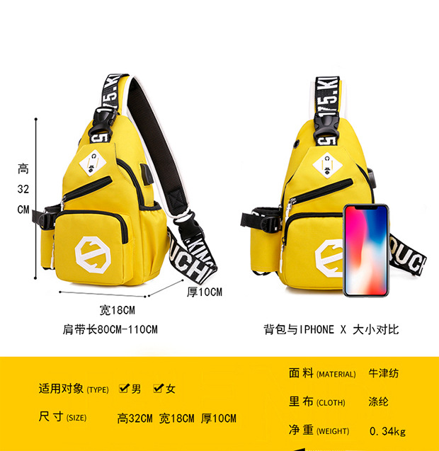 캐주얼 커플 가슴 가방 여성의 패션 캔버스 가슴 가방 한국 스타일 유행 모든 일치 숄더백 남성 스포츠 크로스바디 스몰 백