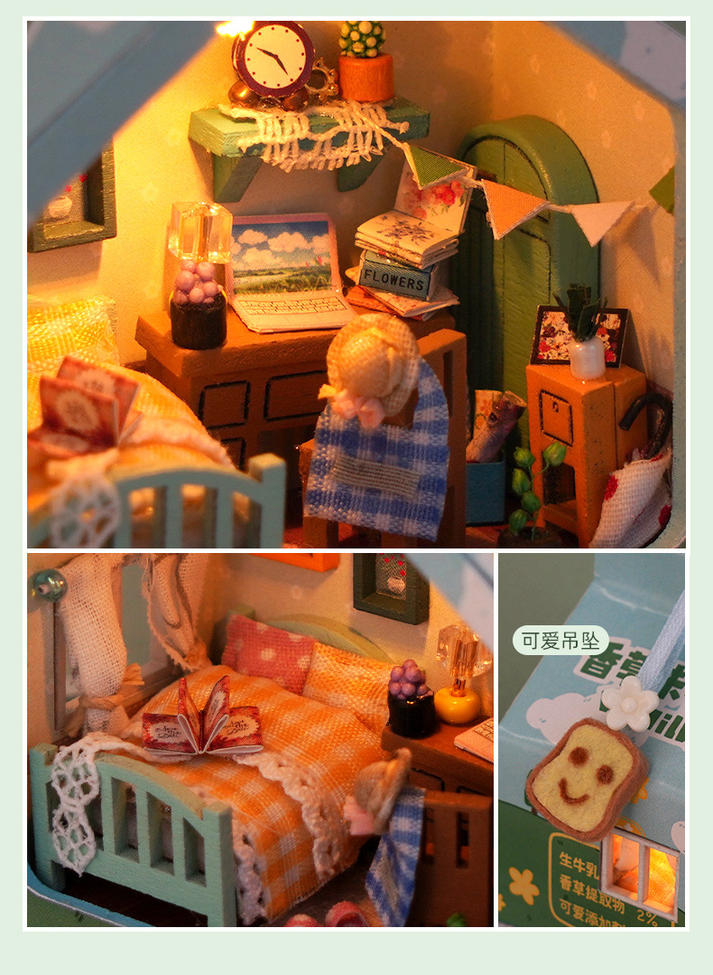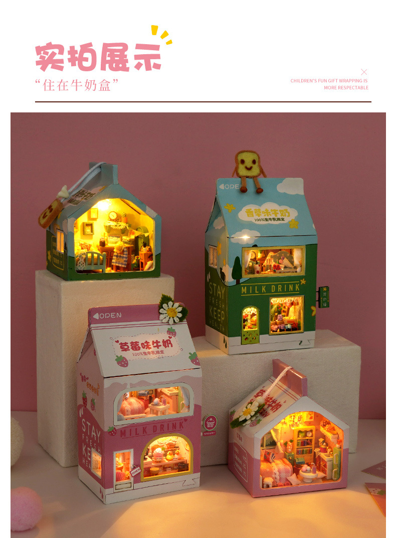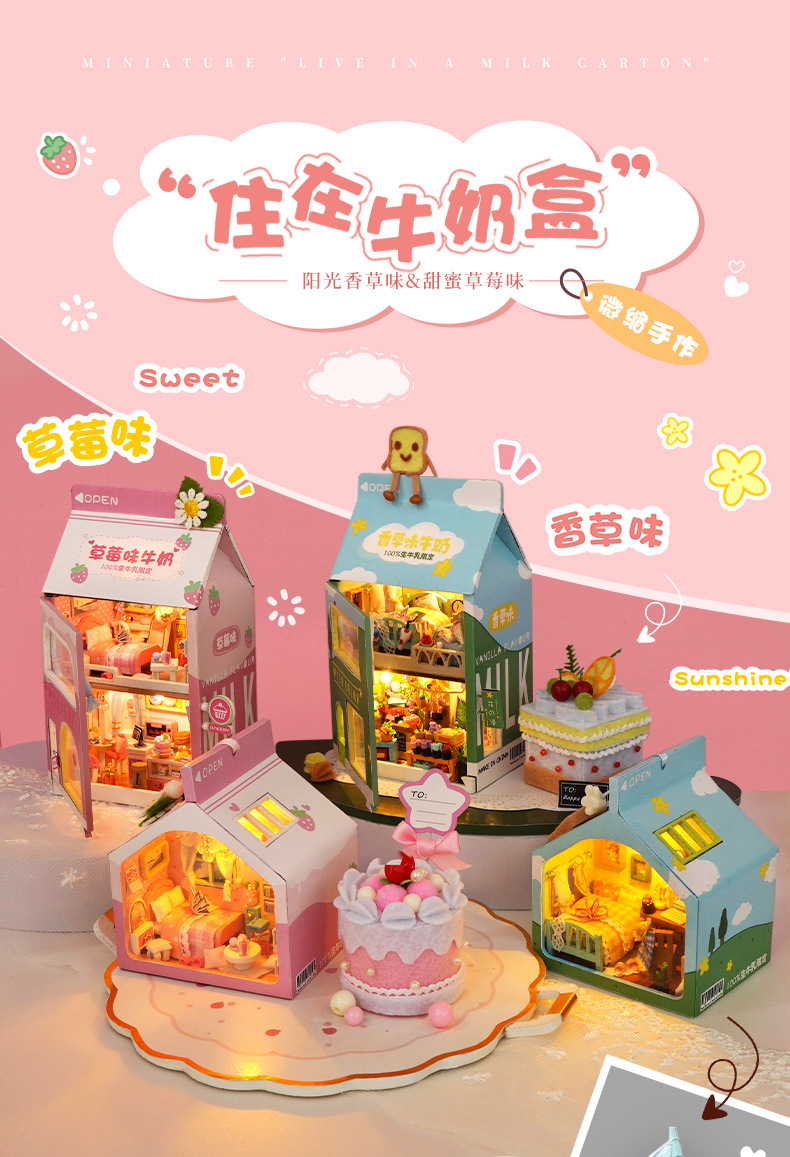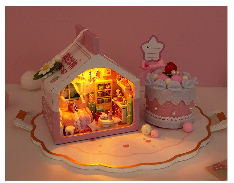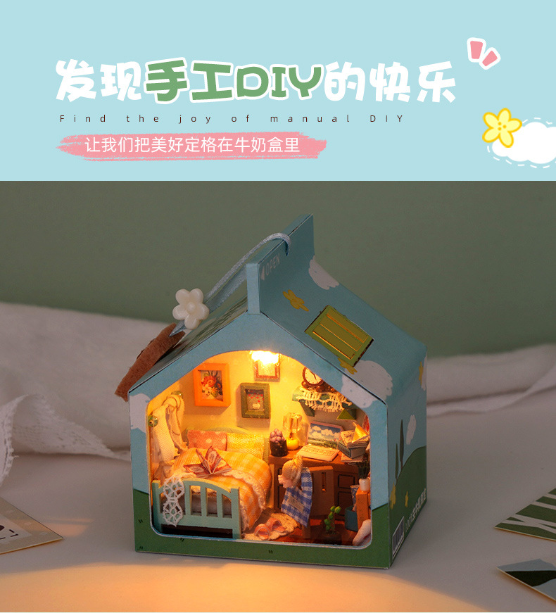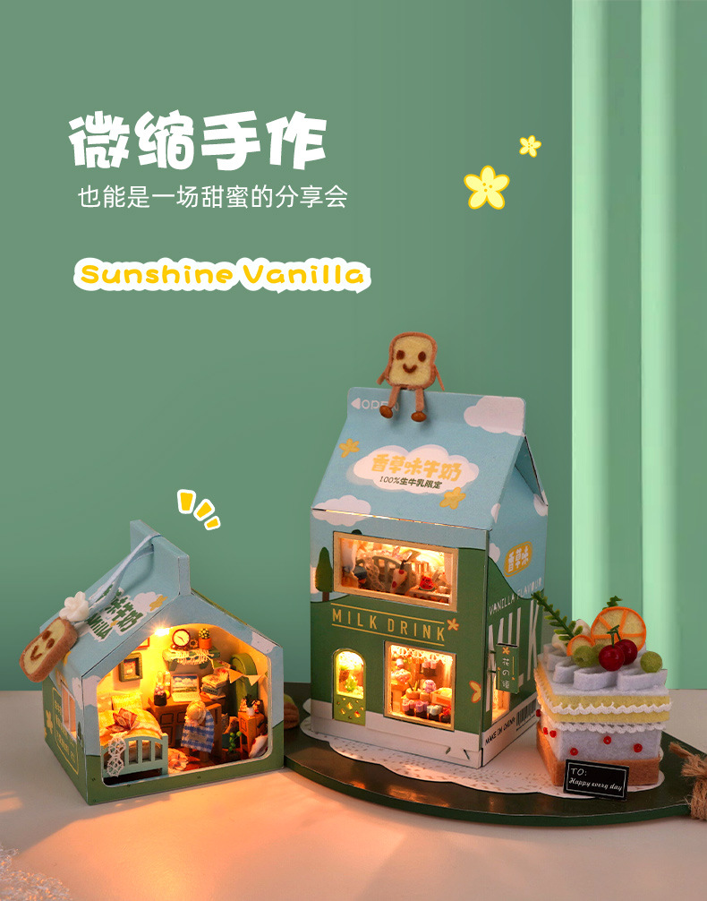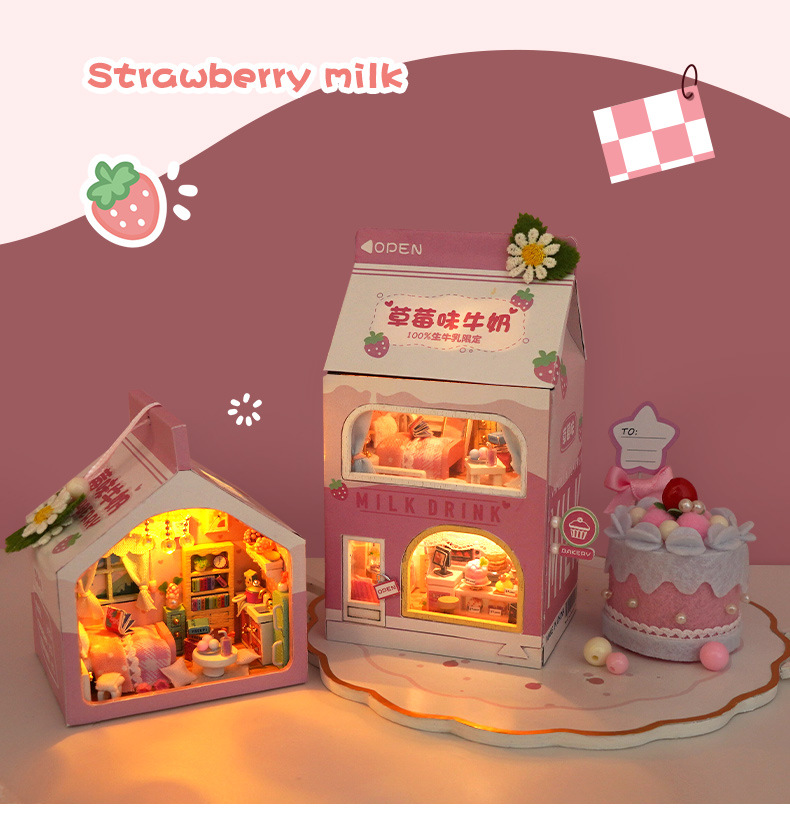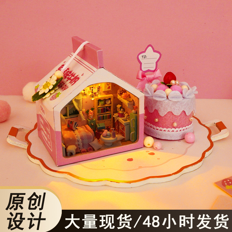 천유 DIY 작은 집 힐링 밀크박스 케이크 트레이 수제 조립 모델 장난감 생일 선물 미니어처