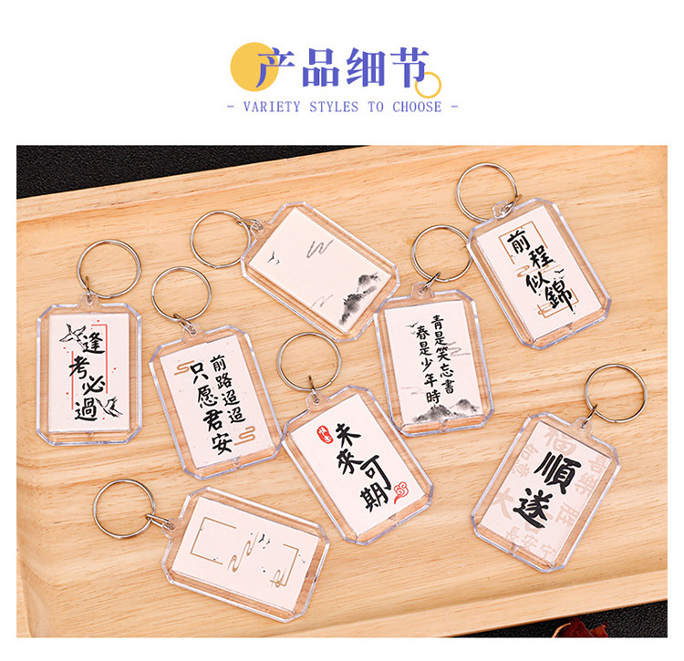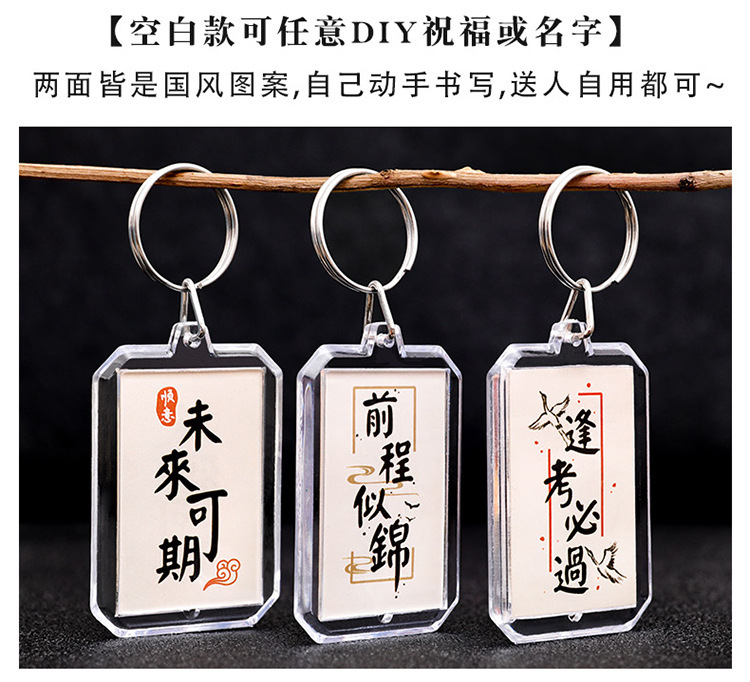 새로운 중국식 양면 서도 키 체인 열쇠 고리 영감 텍스트 가방 펜던트 학생 졸업 시즌 선물스토어 가기