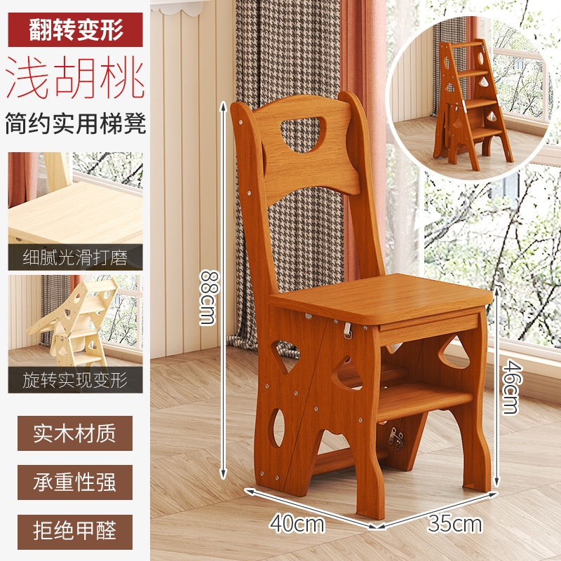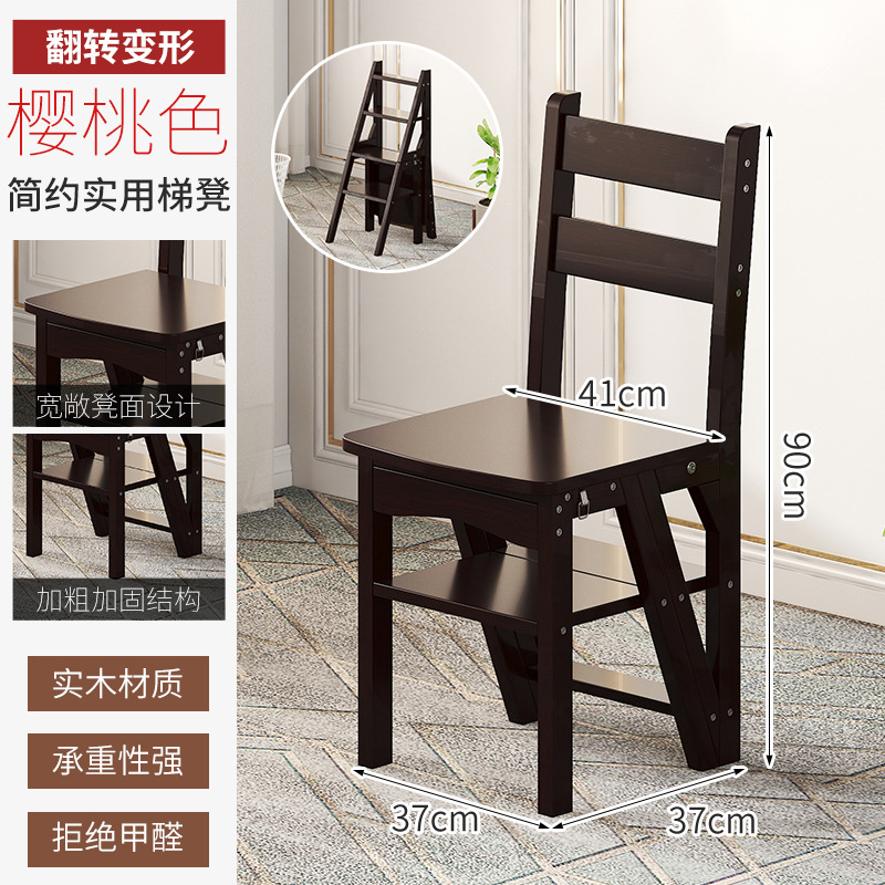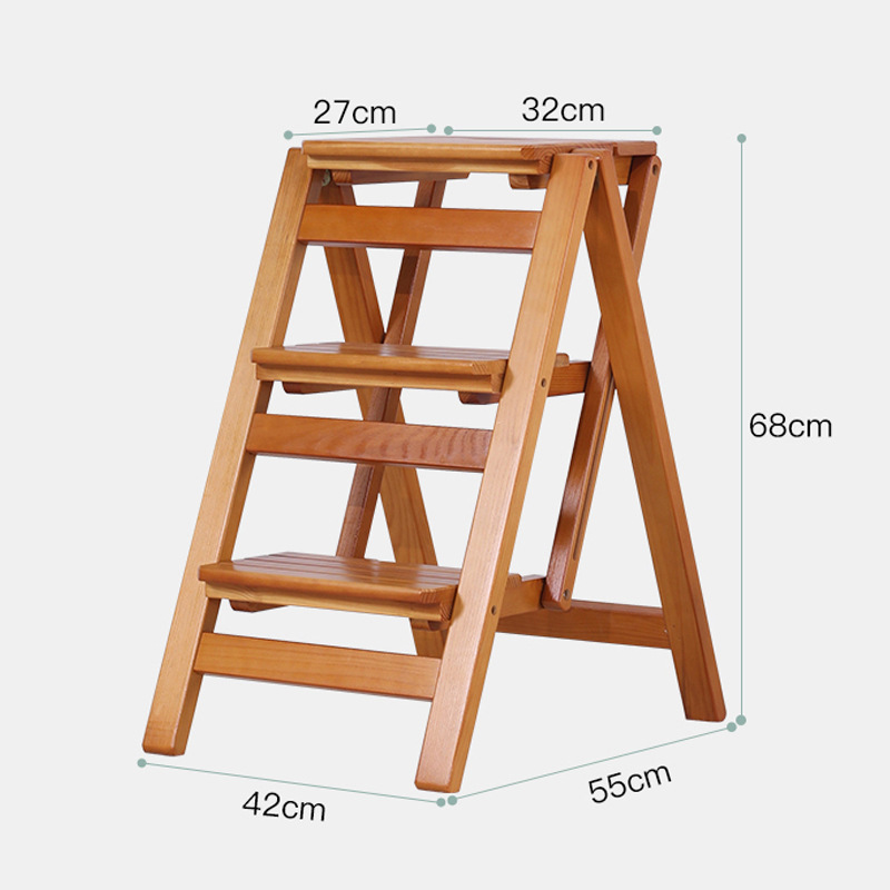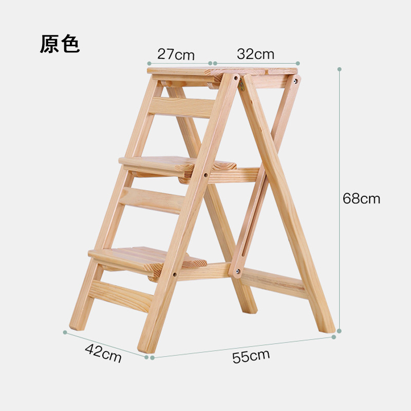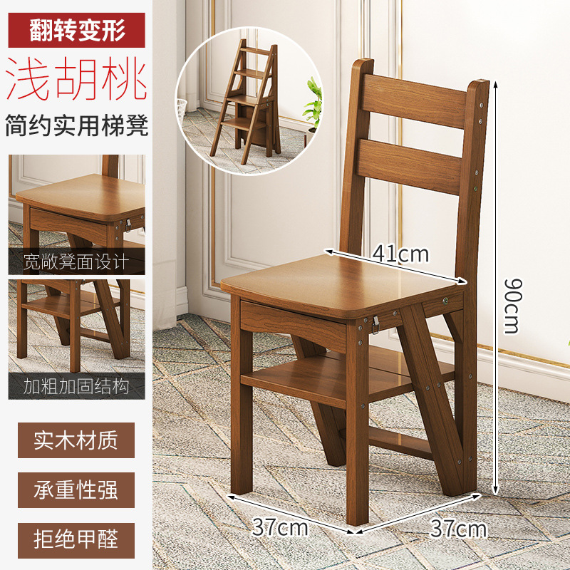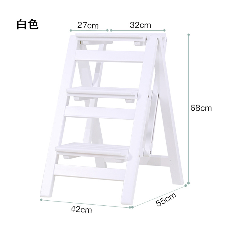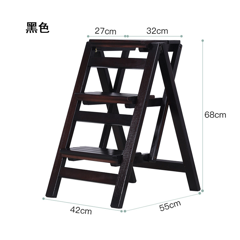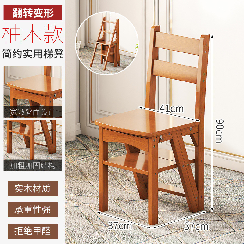 모든 단단한 나무 사다리 의자 가정용 사다리 의자 접이식 계단 실내 등산 다기능 등산 페달 사다리 의자 이중 목적