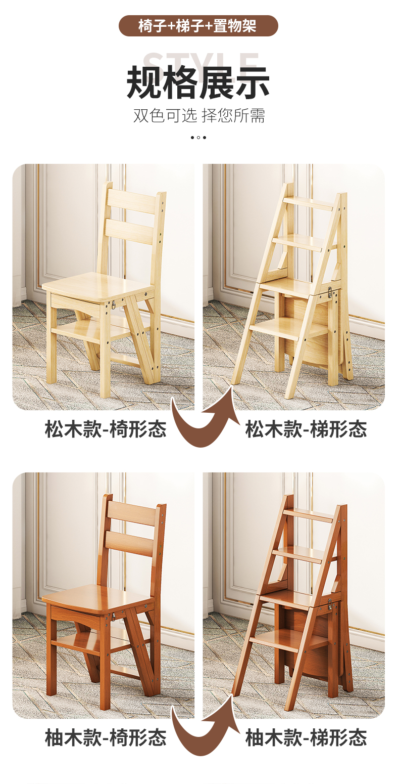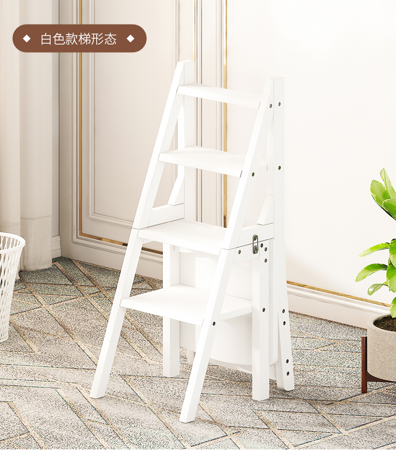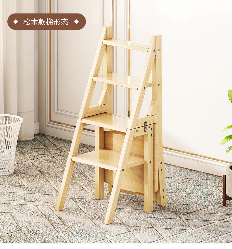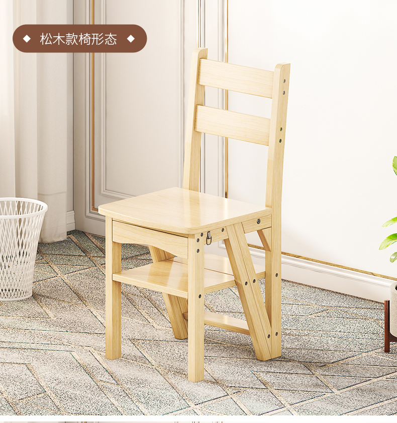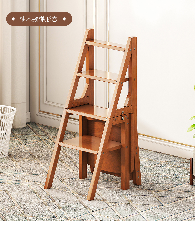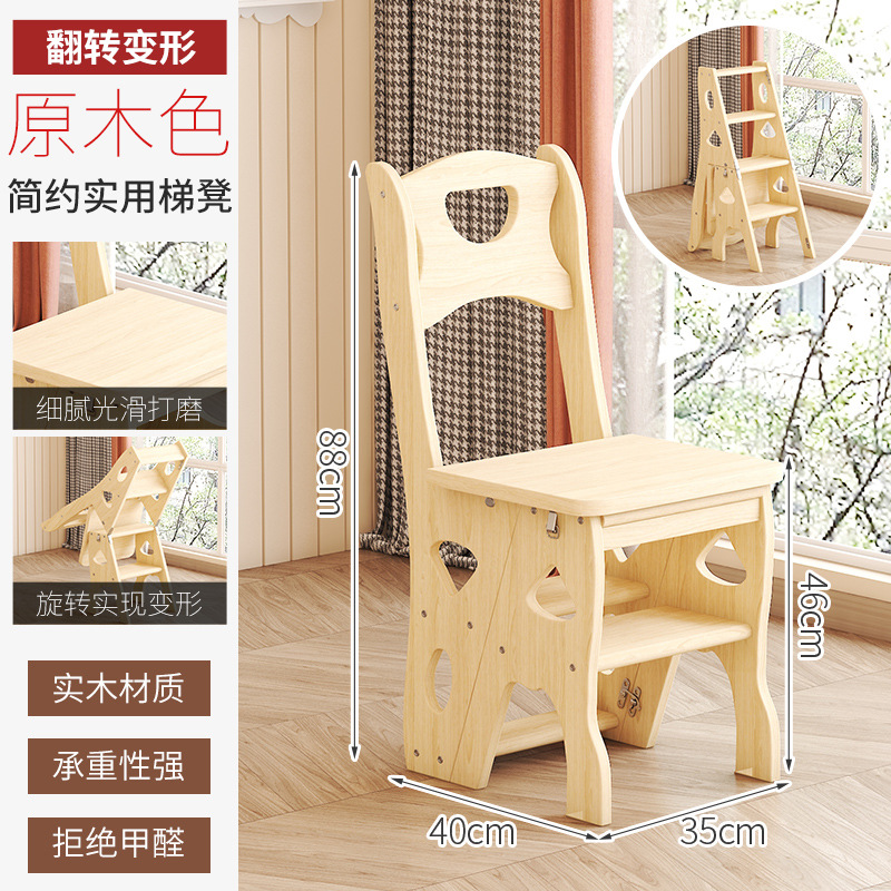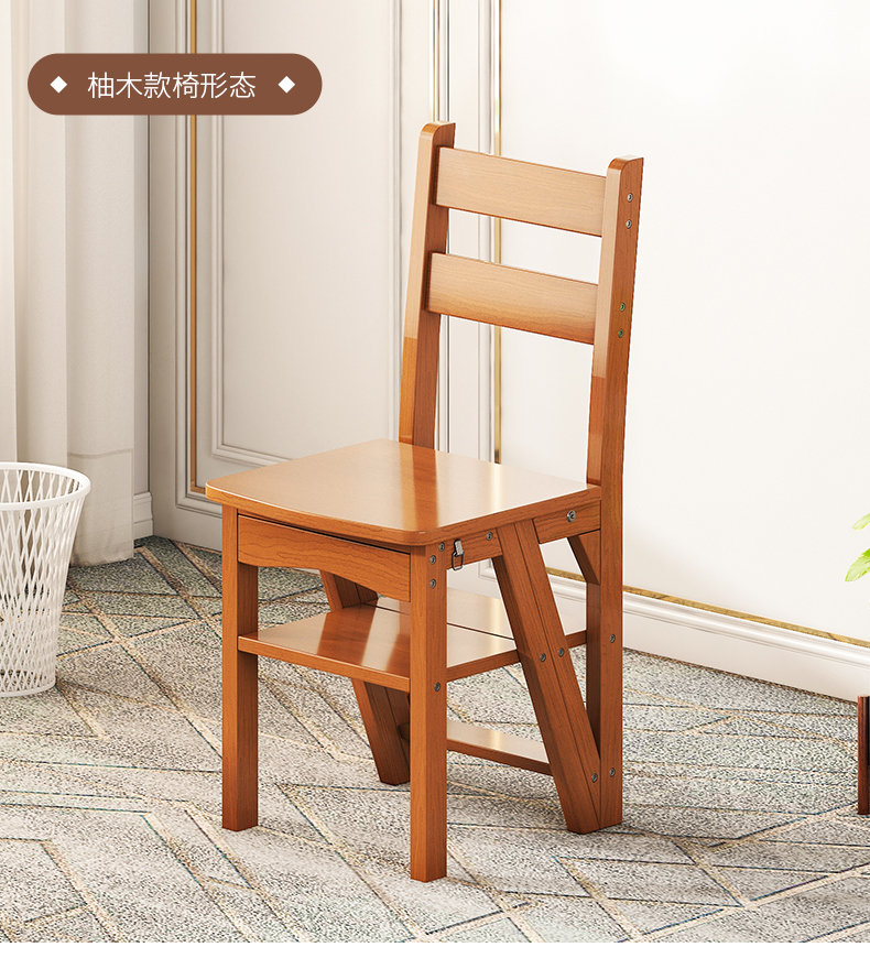 모든 단단한 나무 사다리 의자 가정용 사다리 의자 접이식 계단 실내 등산 다기능 등산 페달 사다리 의자 이중 목적