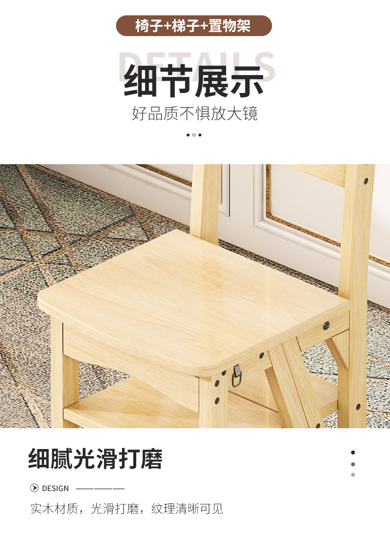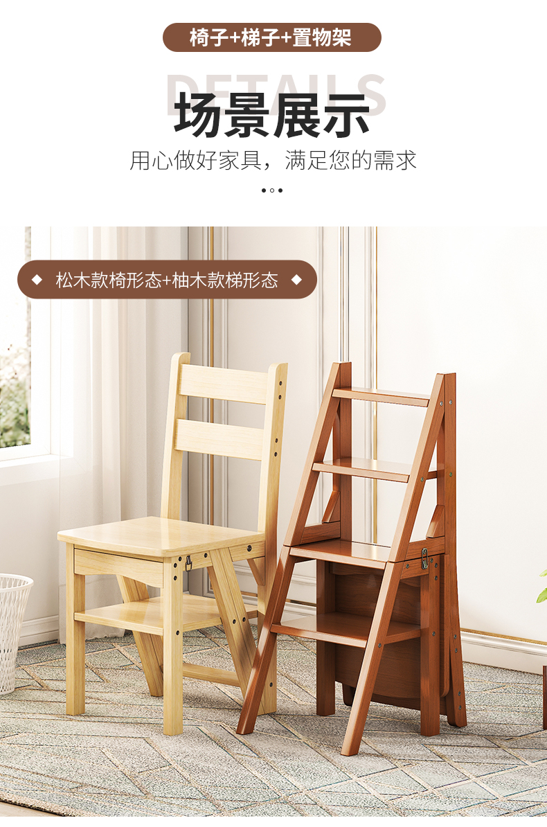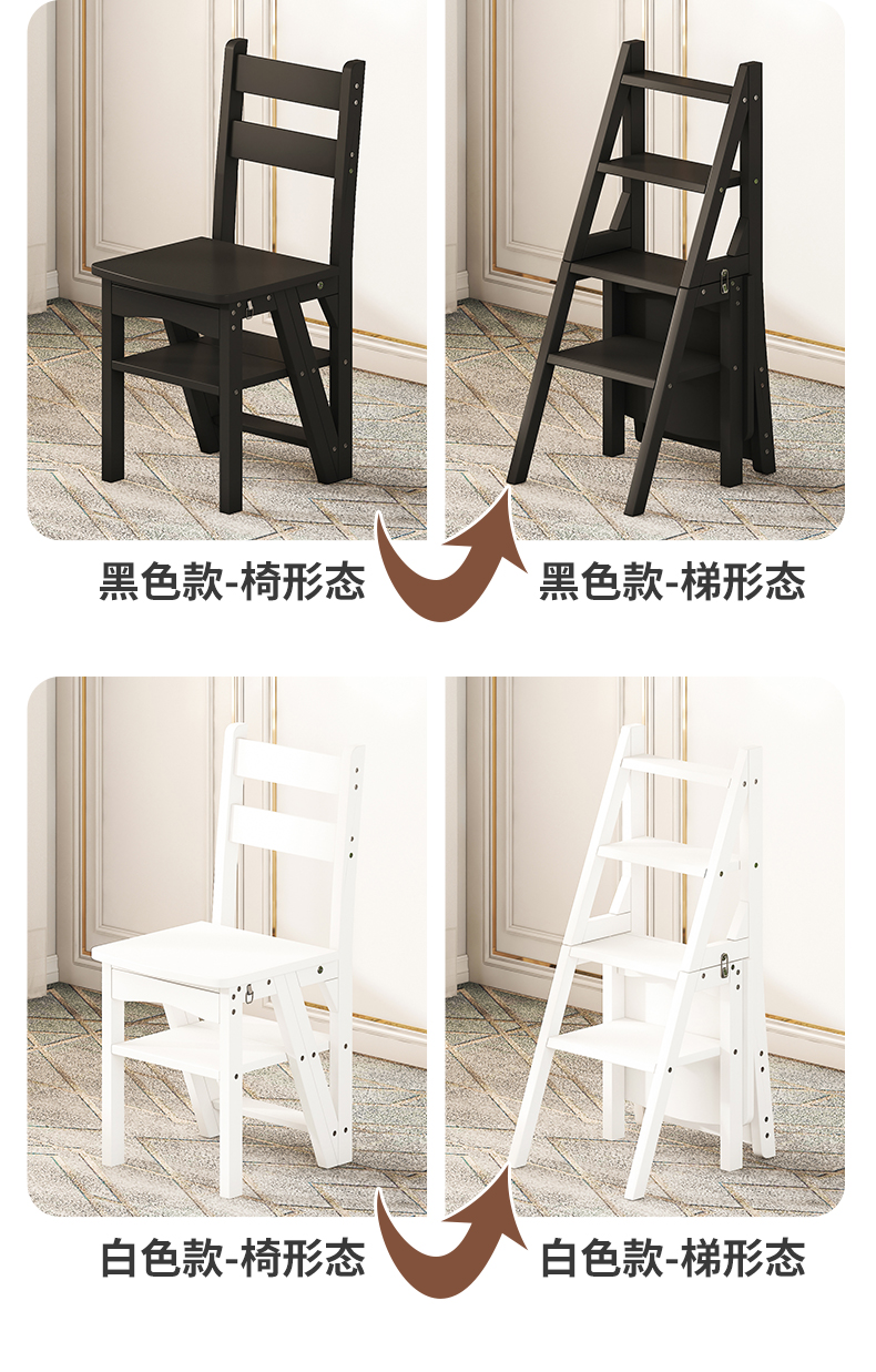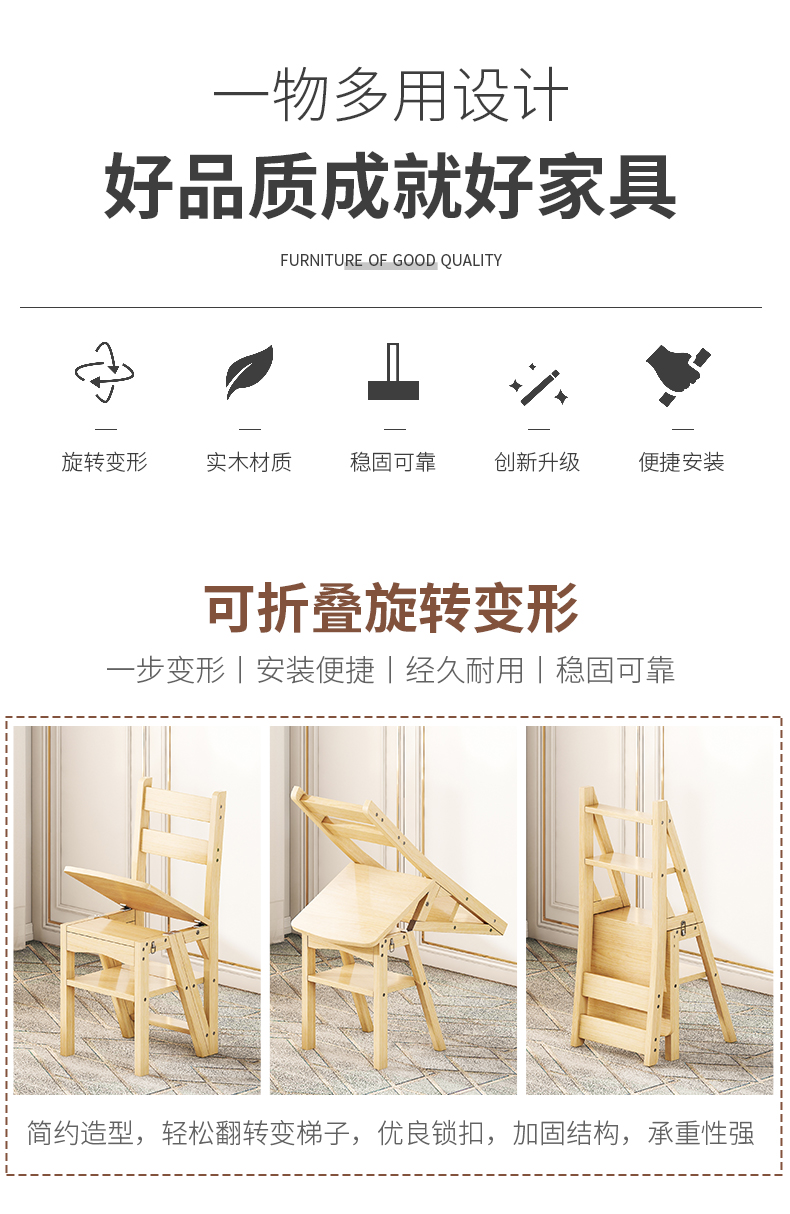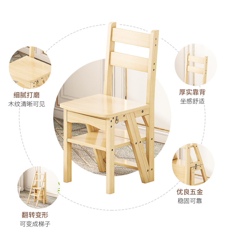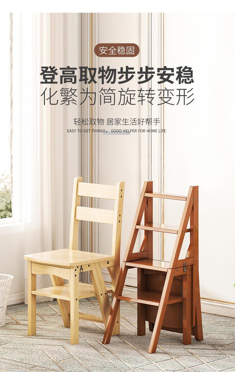 모든 단단한 나무 사다리 의자 가정용 사다리 의자 접이식 계단 실내 등산 다기능 등산 페달 사다리 의자 이중 목적스토어 가기