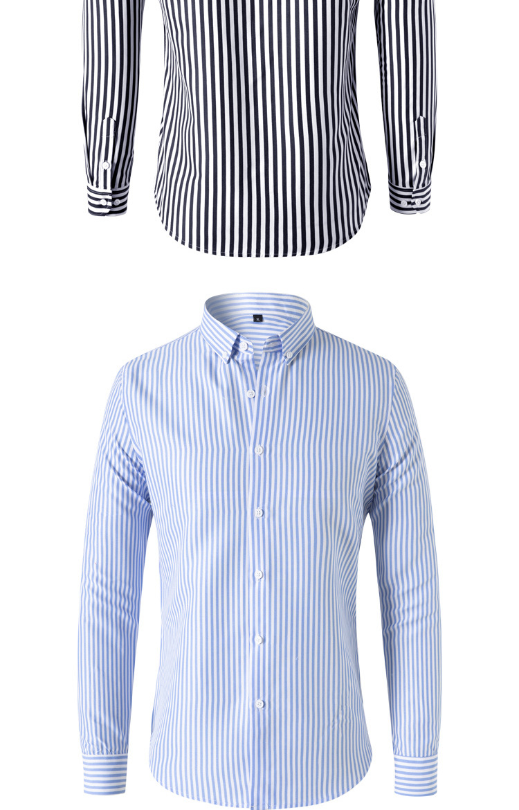2023 크로스 보더 새로운 남성 스트라이프 긴 소매 셔츠 패션 비즈니스 캐주얼 슬림 옷깃 셔츠 남성 도매스토어 가기