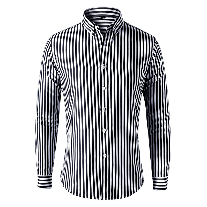 2023 크로스 보더 새로운 남성 스트라이프 긴 소매 셔츠 패션 비즈니스 캐주얼 슬림 옷깃 셔츠 남성 도매