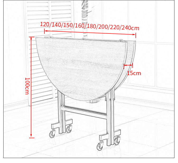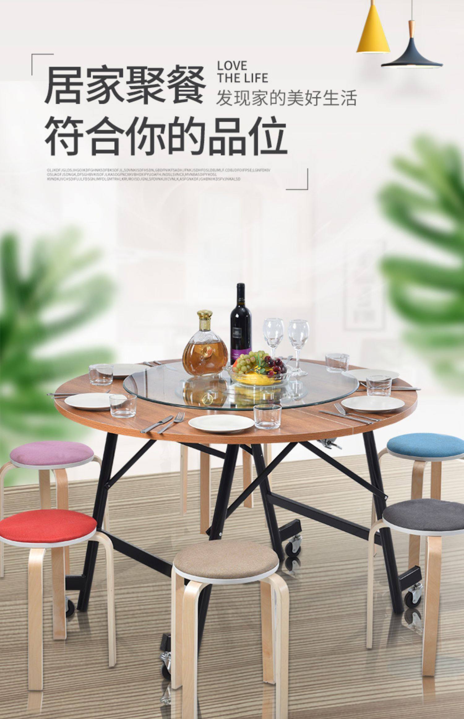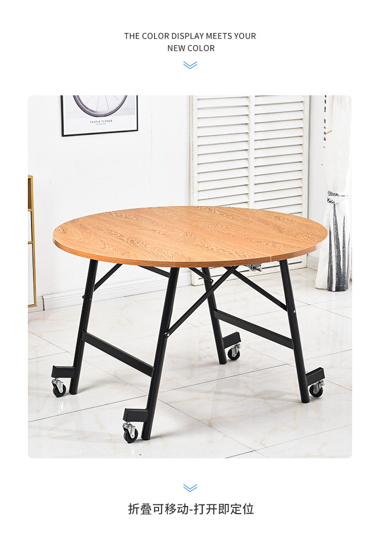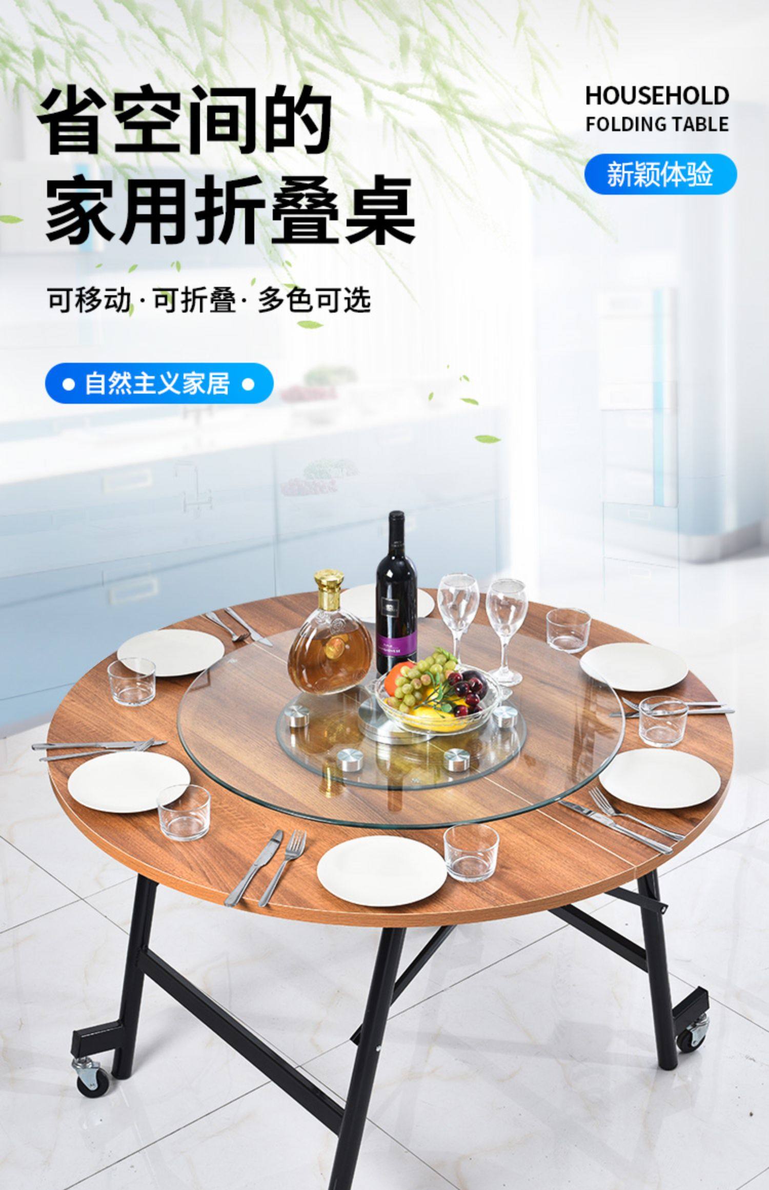 접이식 테이블 대형 라운드 간단한 식탁 단단한 나무 식탁 가정용 식탁 작은 아파트 원형 테이블 다기능 보관