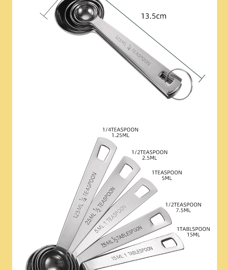 자기 스케일 스테인레스 스틸 5 조각 측정 스푼 식품 등급 베이킹 측정 양념 스푼 측정 세트 베이킹 측정 스푼